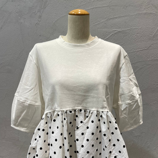 【Munich】コットンジャージ×クリンクルポリエステルラッフルカフプルオーバー
