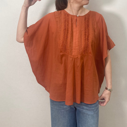 【Munich】コットンジャージ×クリンクルポリエステルラッフルカフプルオーバー