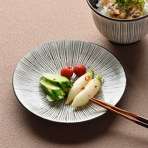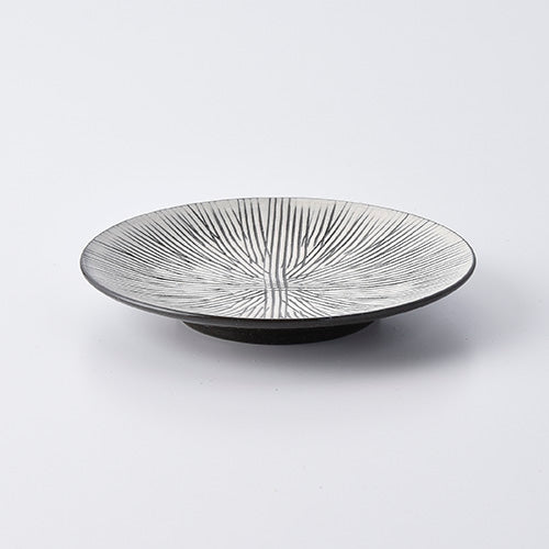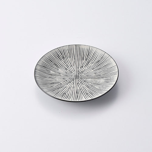 黒い土に刷毛で白化粧を施し、職人が手仕事で丁寧に表麺を線(SEN)彫りしたモダンでスタイリッシュな器です。