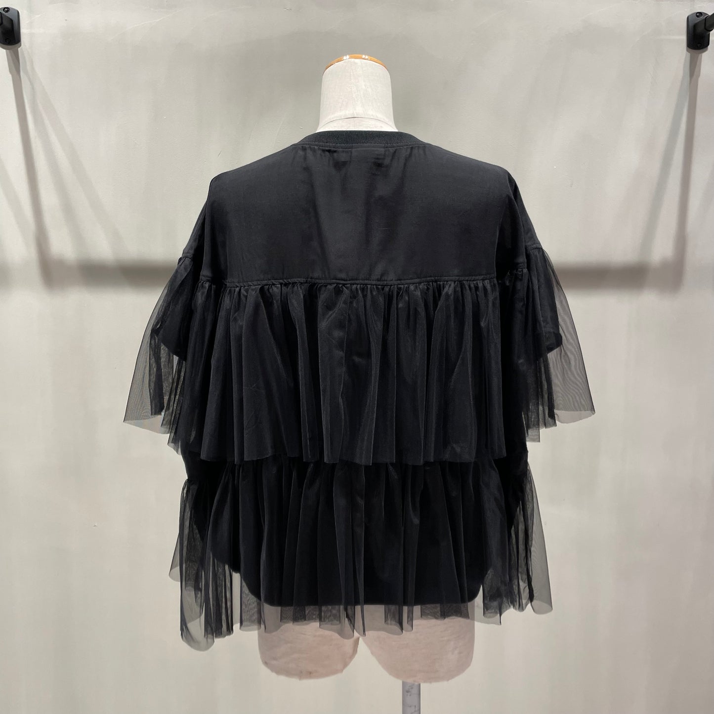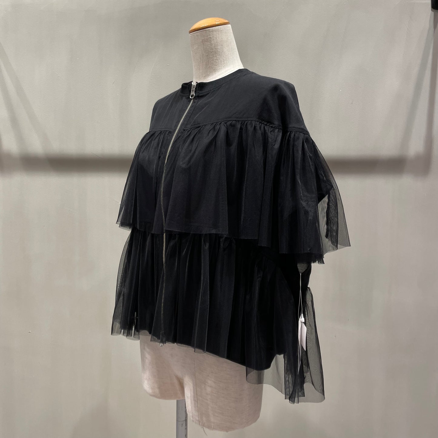 ふんわりチュールが乗るので肩周りもカバーしてくれる優秀アイテムです。