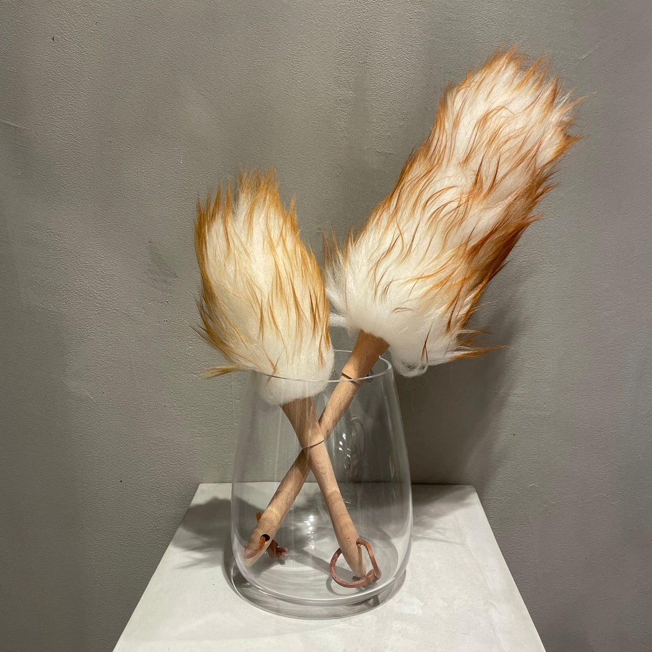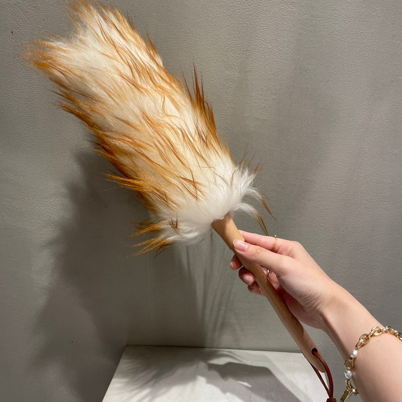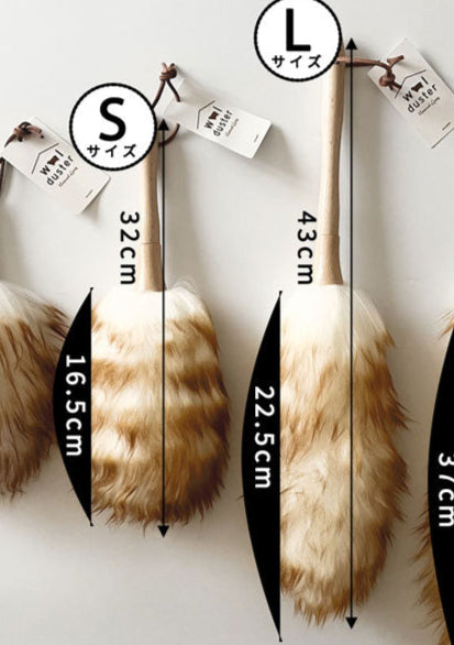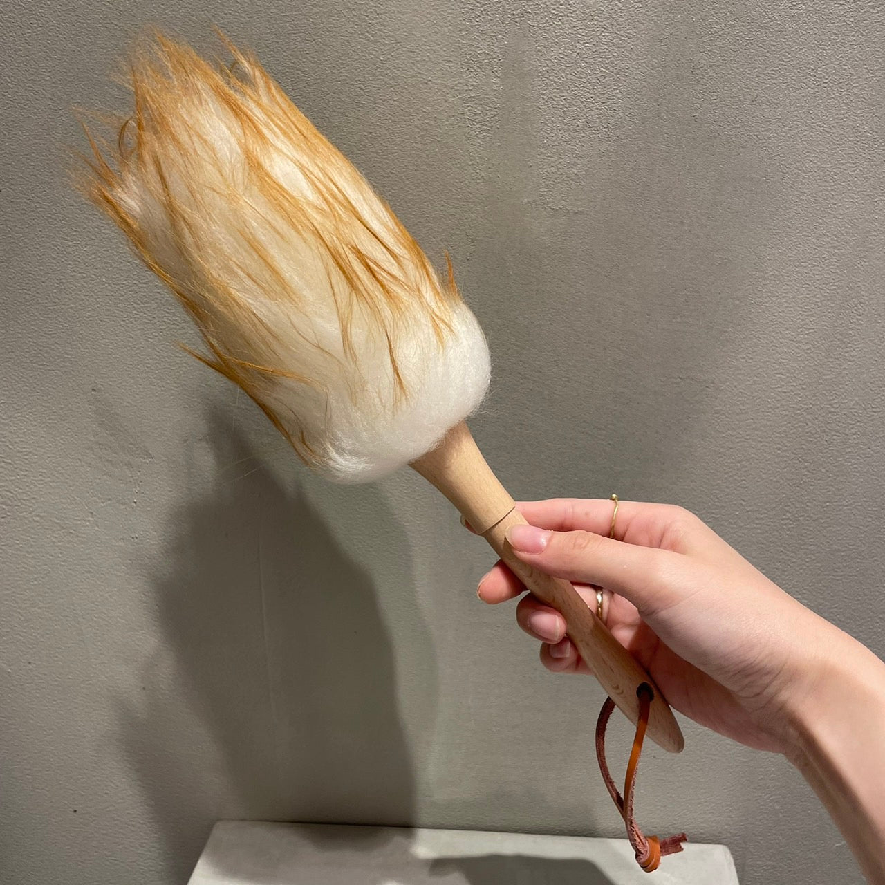 天然ウール100%×天然木柄×革ひもストラップのハンディーダスター。
