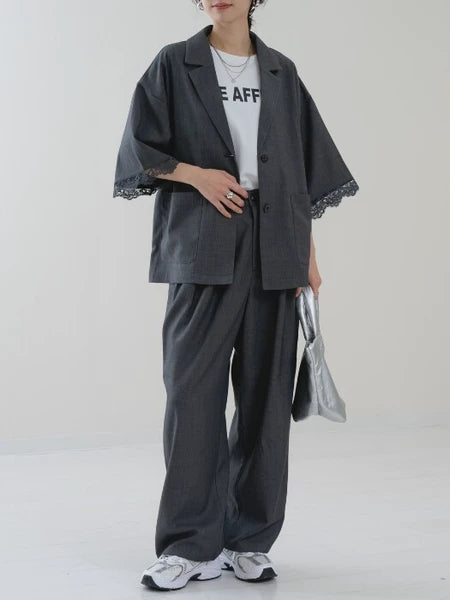 シルエットはルーズに広がりすぎないワイドストレートです。