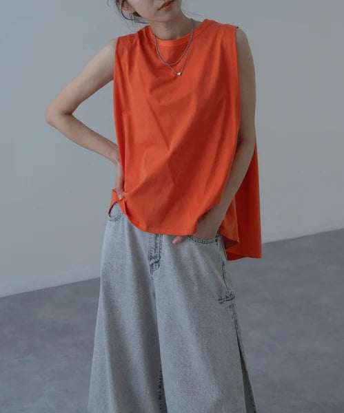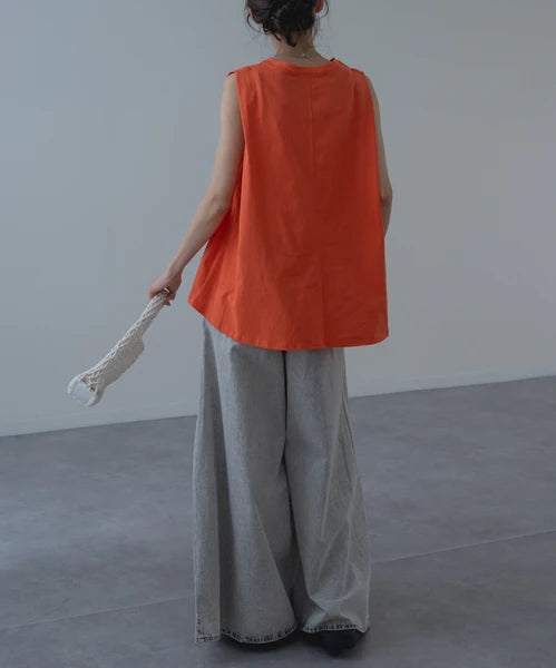 さらっとしたカットソー生地でボディラインを拾いすぎないゆったりとした着心地です。