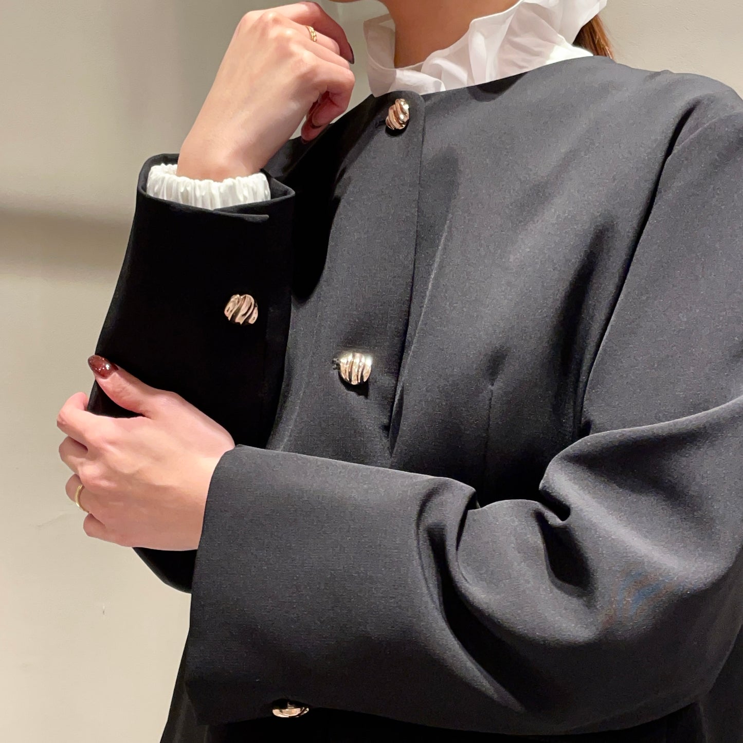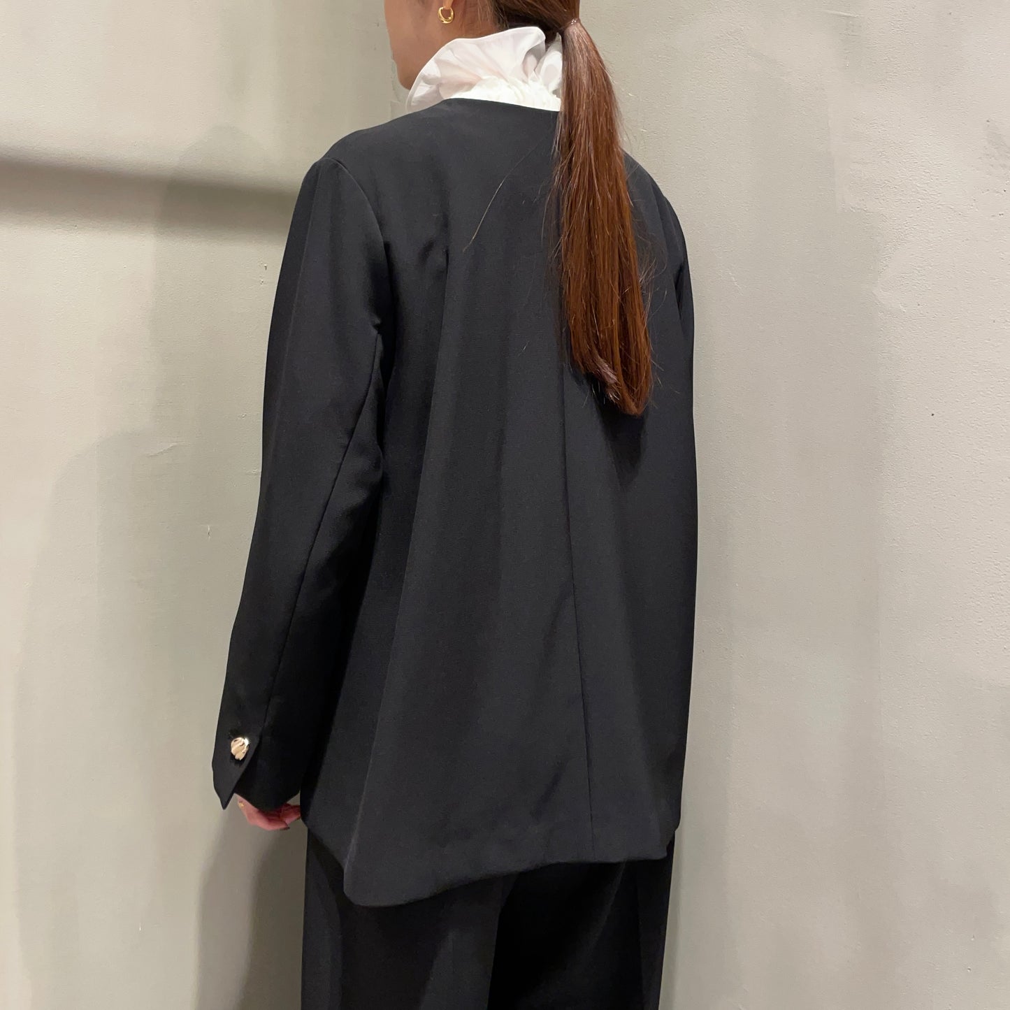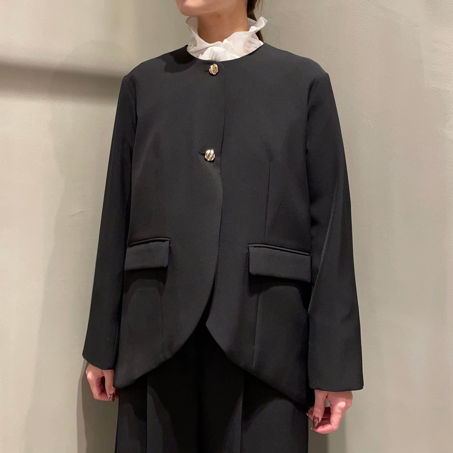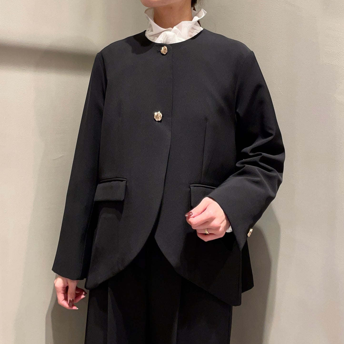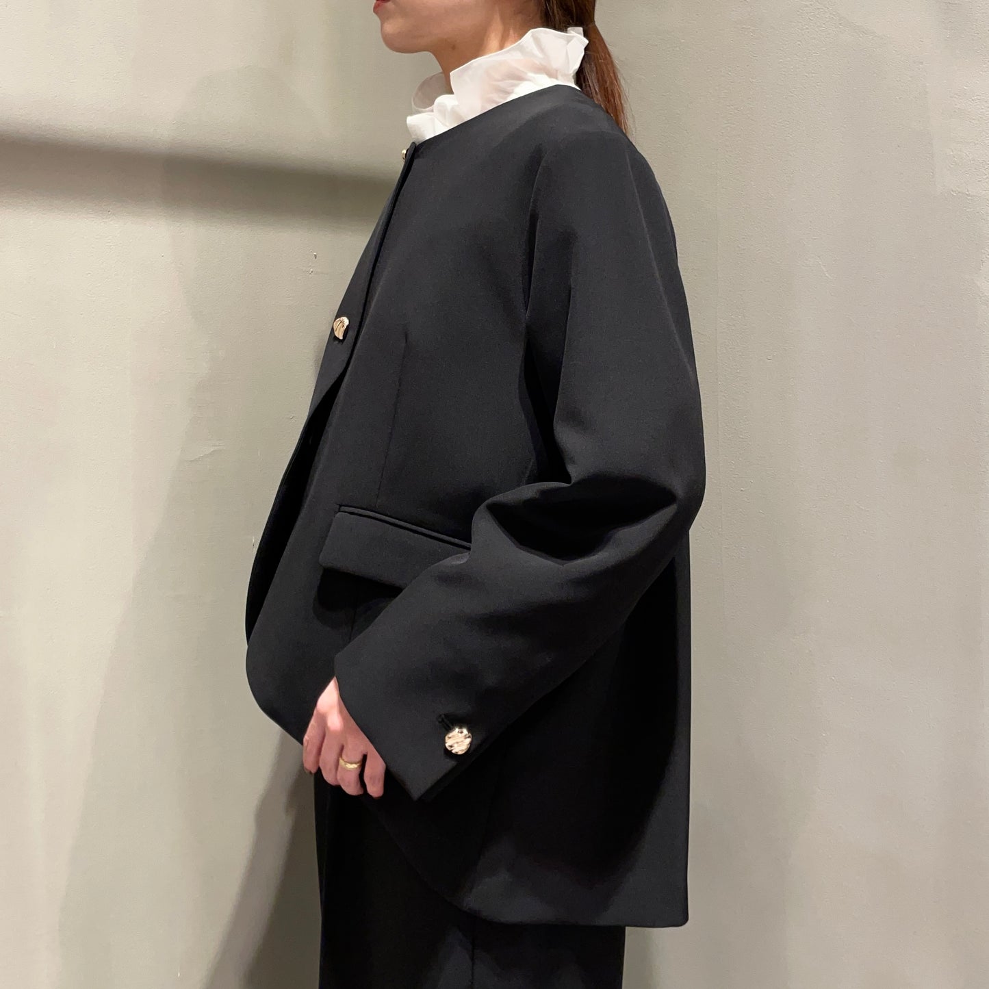落ち感のあるダブルクロス素材を使用した、ノーカラーのJKです。