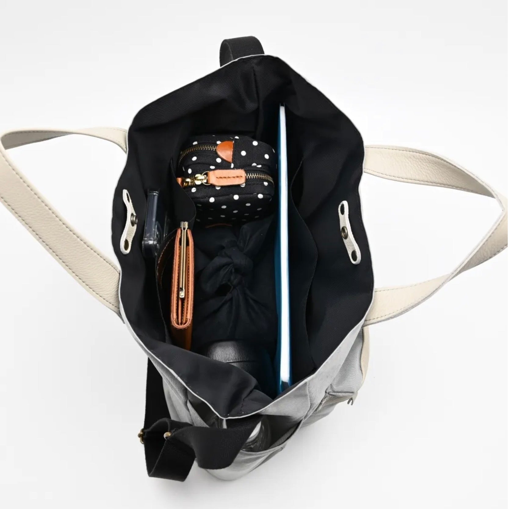 ハンドルで手持ちしても、ショルダーで肩掛けしてもバランスよく使えるデザインです。