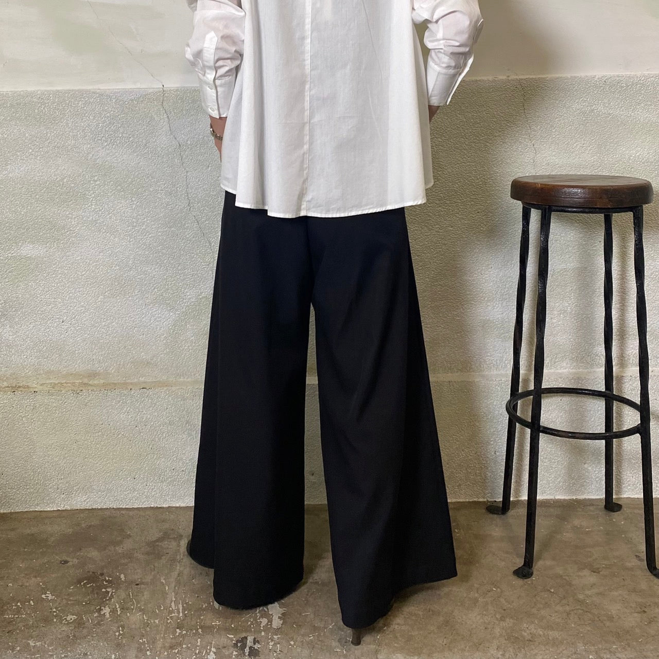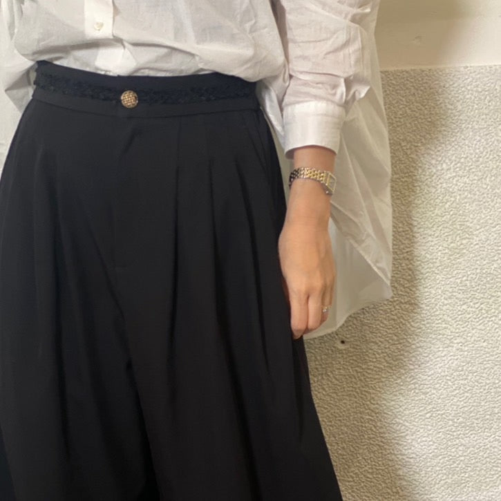 前側にタックをいれることで、ウエストやヒップ周りをカバーし、脚長効果も。