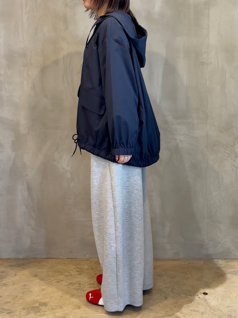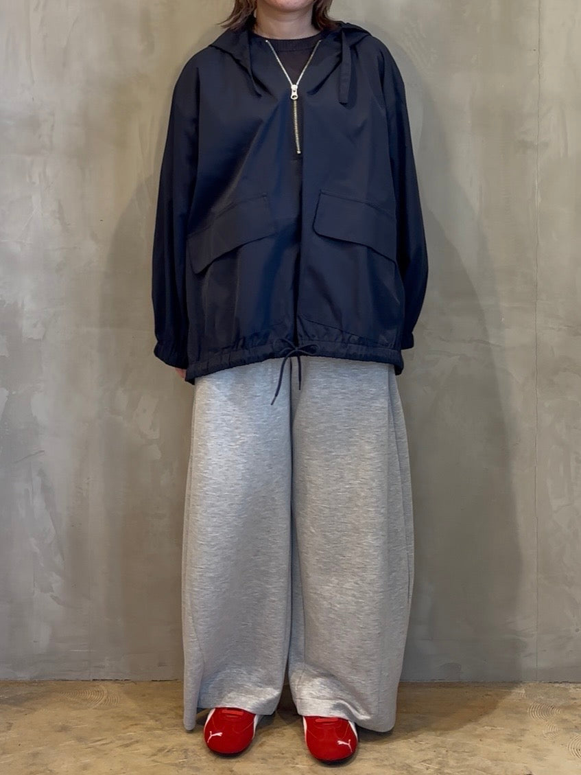 スウェットほどのカジュアルさがなく、ツルっと艶のある素材感がオンオフ問わずコーディネートが楽しめる一着です♪