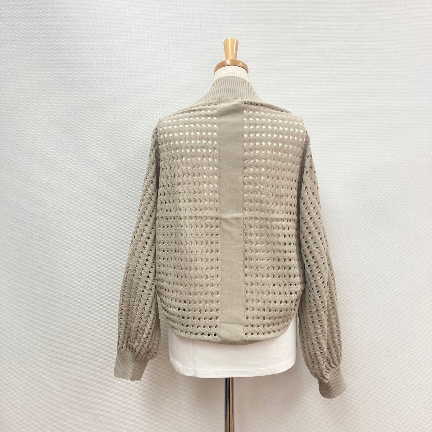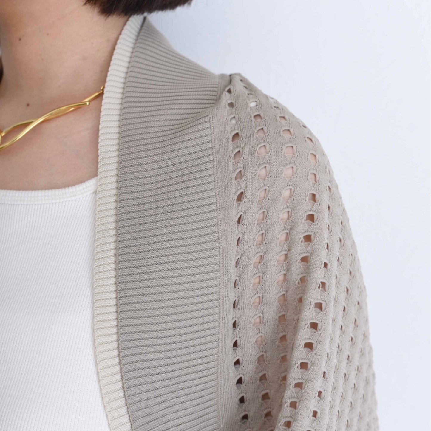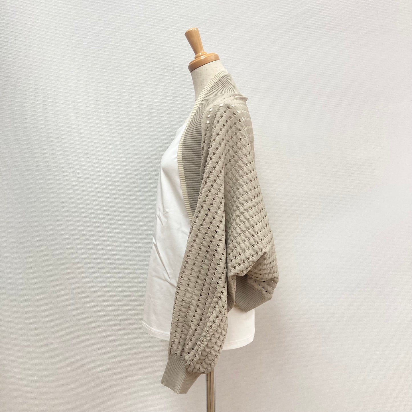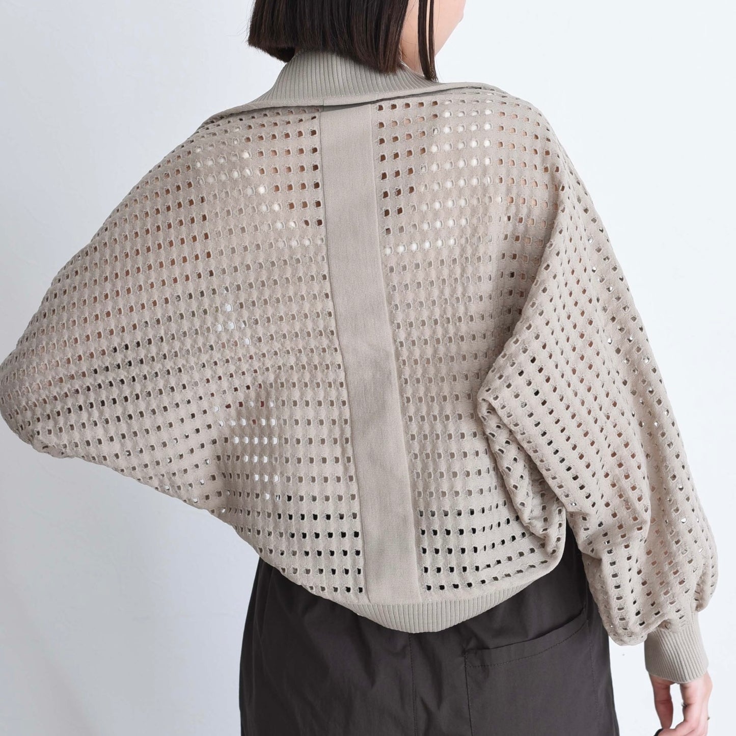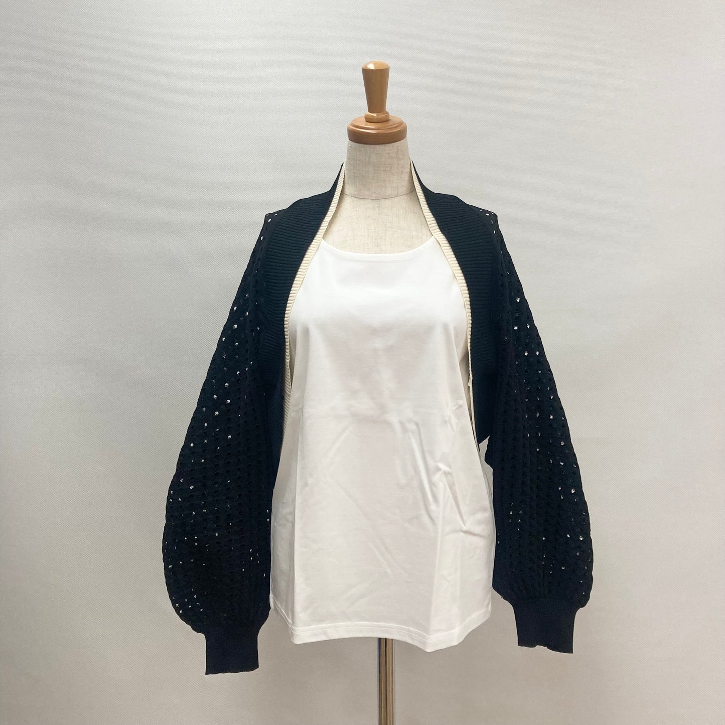 膨らみのあるスポンジングな糸で仕上げたメッシュニットボレロ。