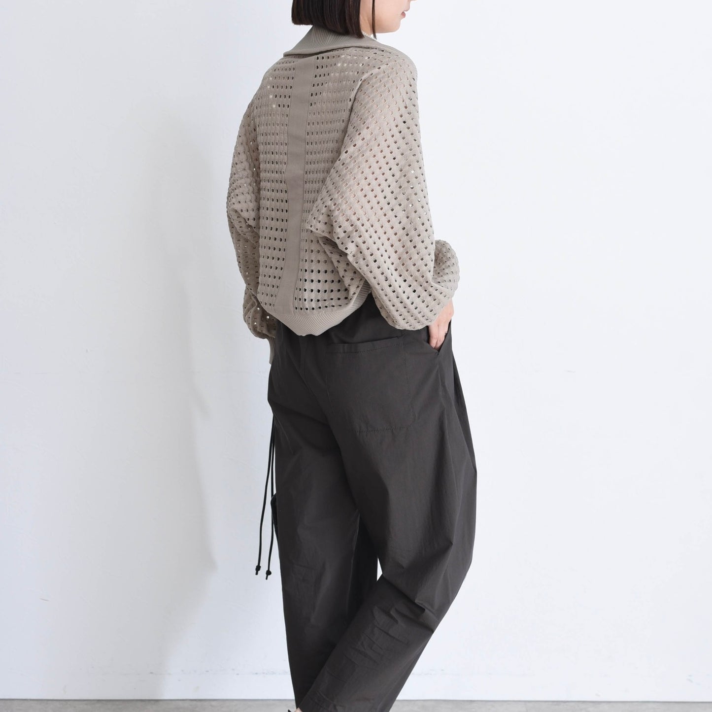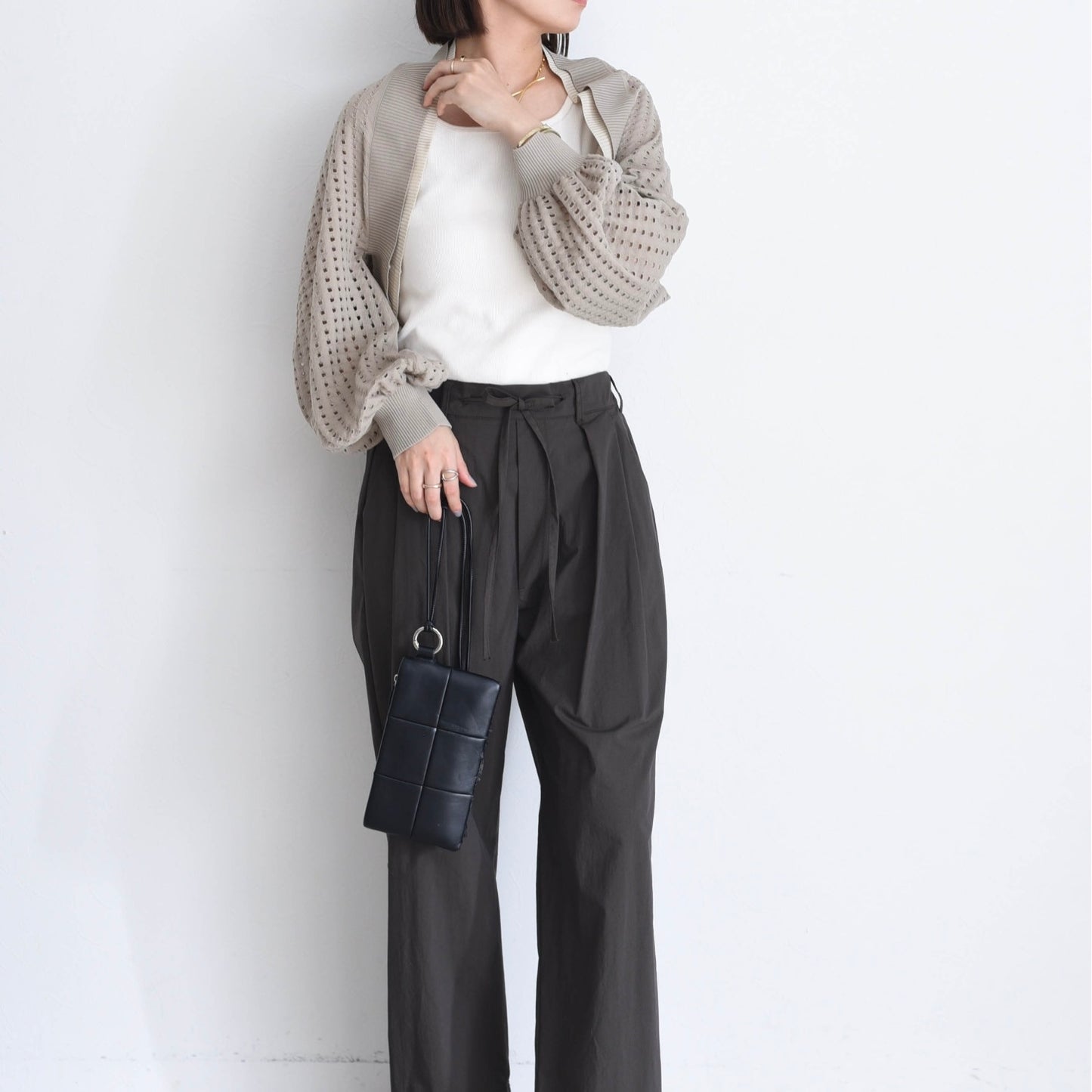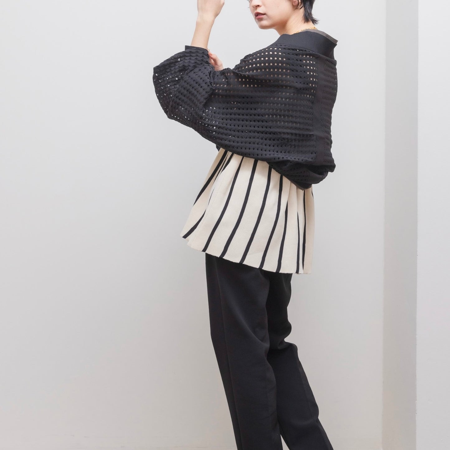 丸みのあるシルエットが特徴で、ブロック調のメッシュ編みが甘過ぎるずモードに着こなしを格上げしてくれます。