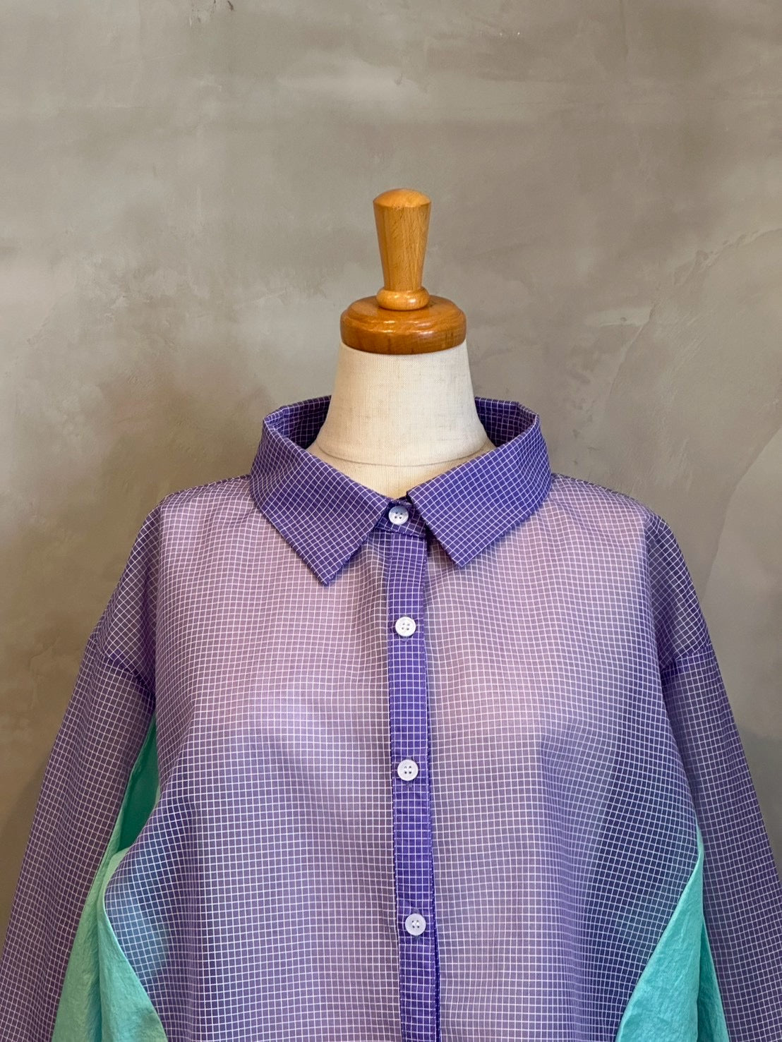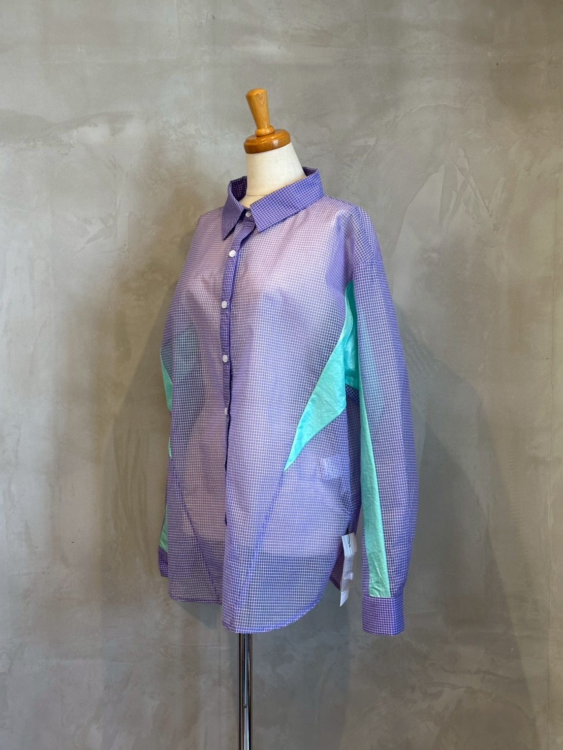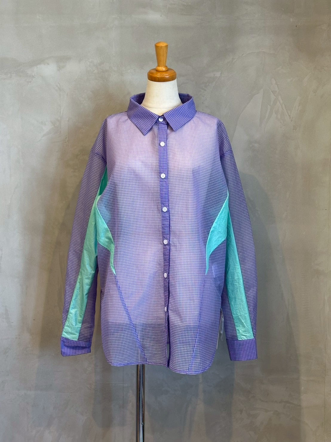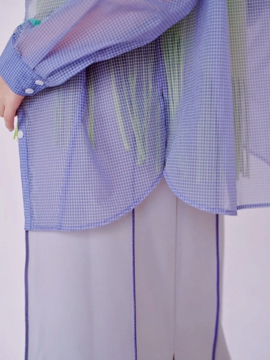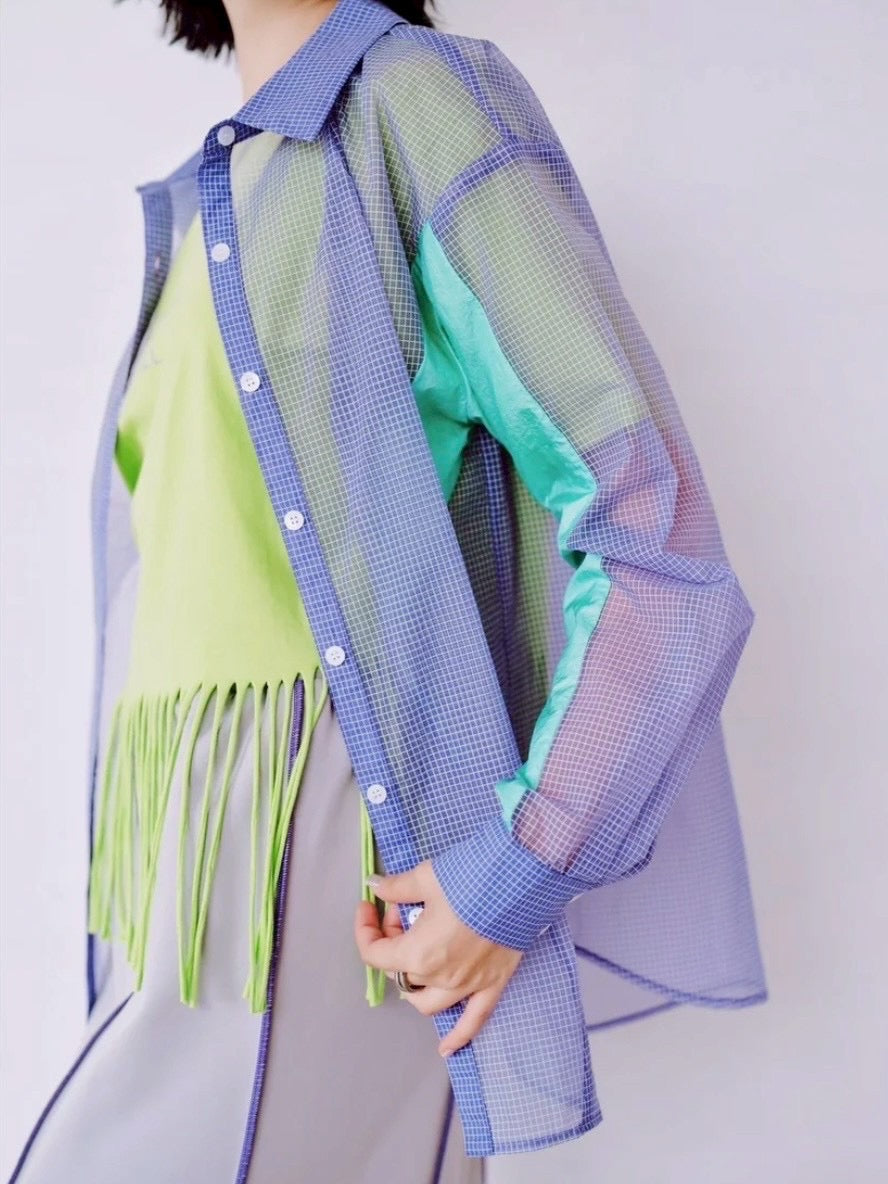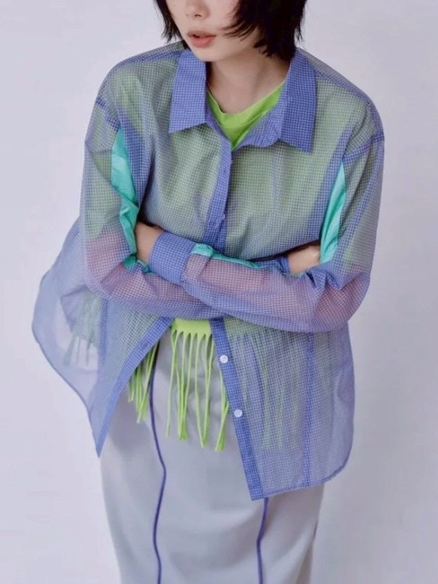 軽やかなシアー素材を使用したチェックシャツ。