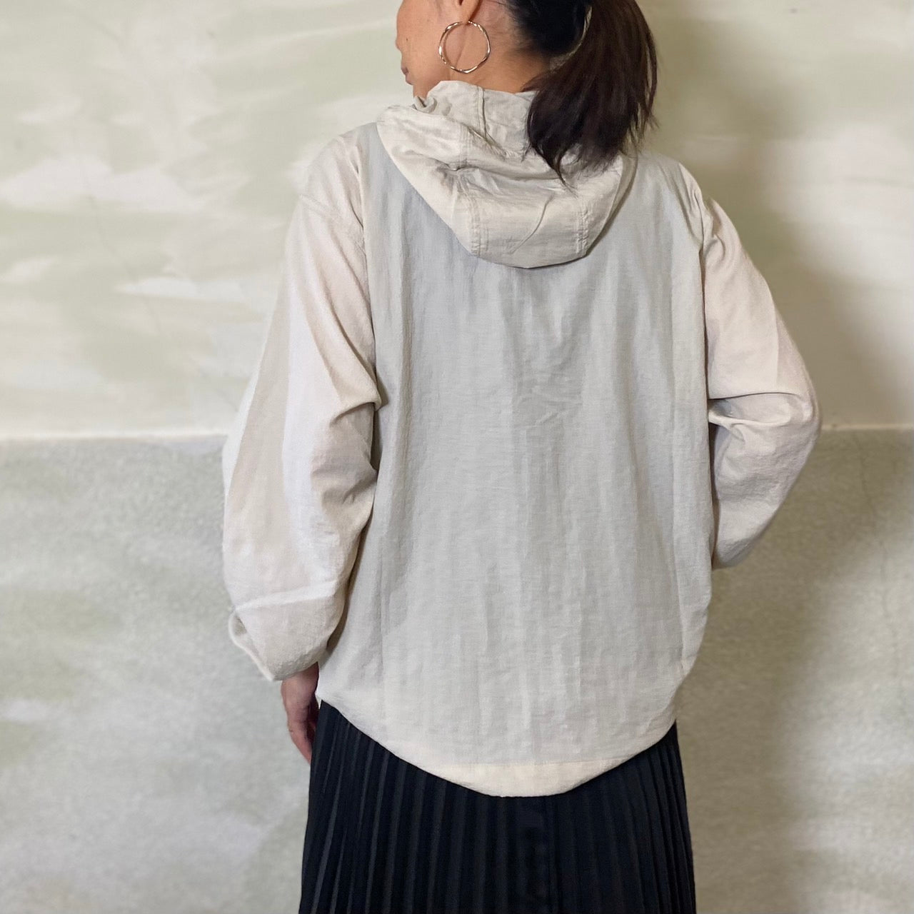 軽量で防風性のある、肌触りの良い微ワッシャー加工のナイロン素材を採用したトラックジャケット。レイヤリングしても動きを妨げない程よくワイドなシルエットです。