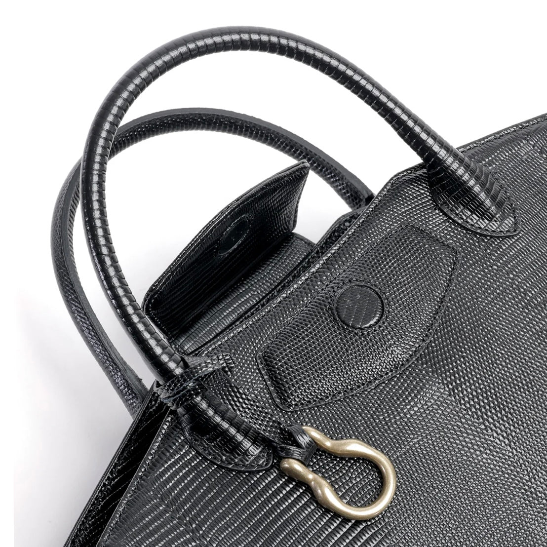 上品なリザード型押しレザーのトートバッグは、