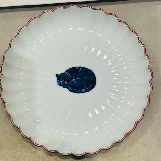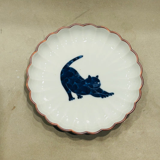 【長崎】波佐見焼 西海陶器 呉須猫 菊割5.5寸皿
