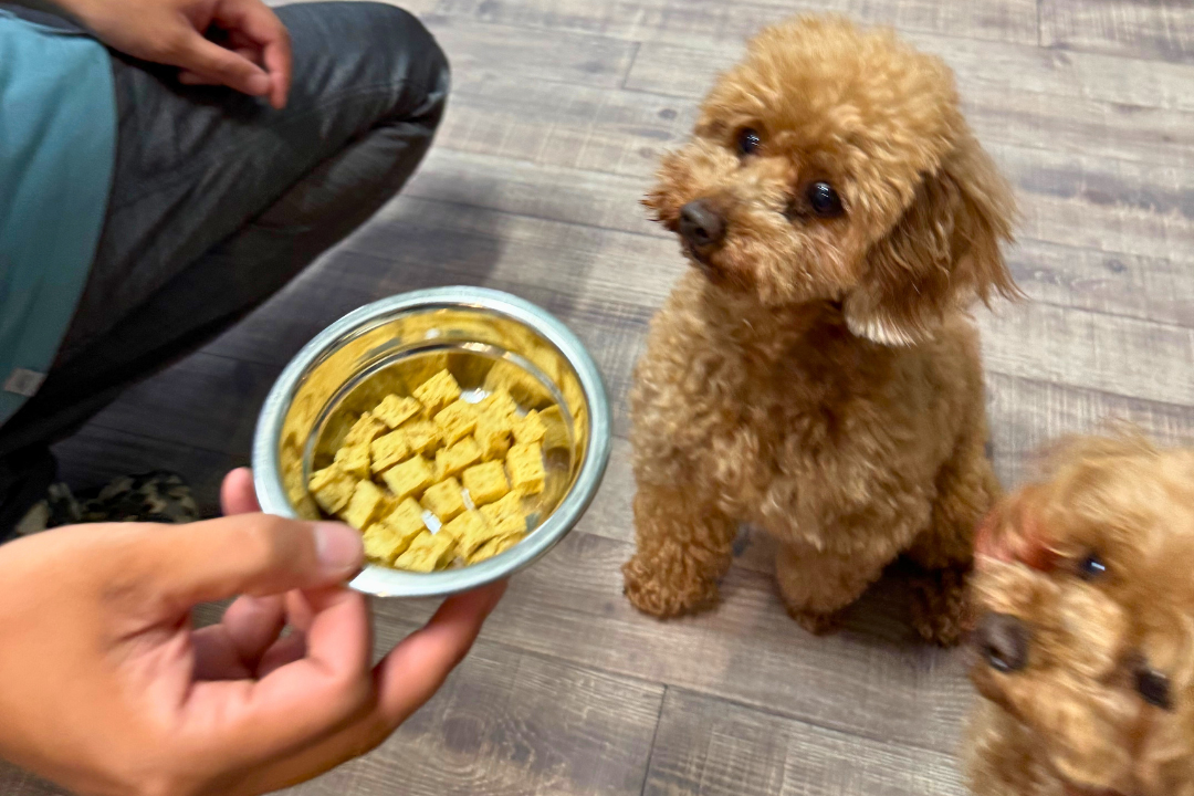 【おとうふキューブ】そのままおやつもOK。ふやかして、お肉や野菜スープ、ご飯に混ぜてもOK。ダイエット中の子にも満足してもらえる一品。かつお、さば、いわしのミックス魚粉がまぶされています。