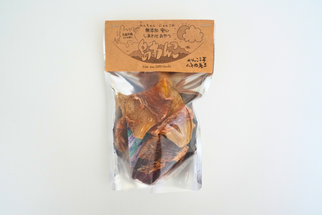 長崎県五島列島の特産品を贅沢に使った安心安全な無添加おやつです。わんちゃんねこちゃんに五島のやさしい素材をそのまま食べてもらいたくて作りました!