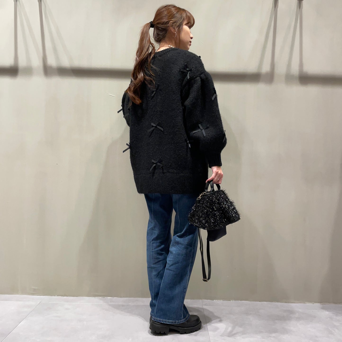 トレンドのリボンをドットのように配置し、背面まで贅沢にあしらったCOELらしいアイテムです。