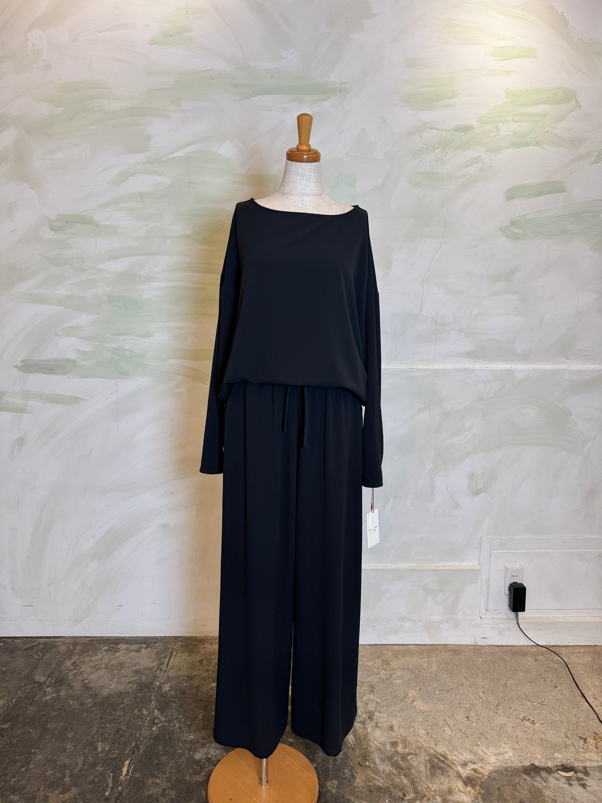とろみ感のあるストレッチジョーゼット素材で、きれいめにもカジュアルにも着回せる万能ワイドパンツ。日本製の上質な一枚。