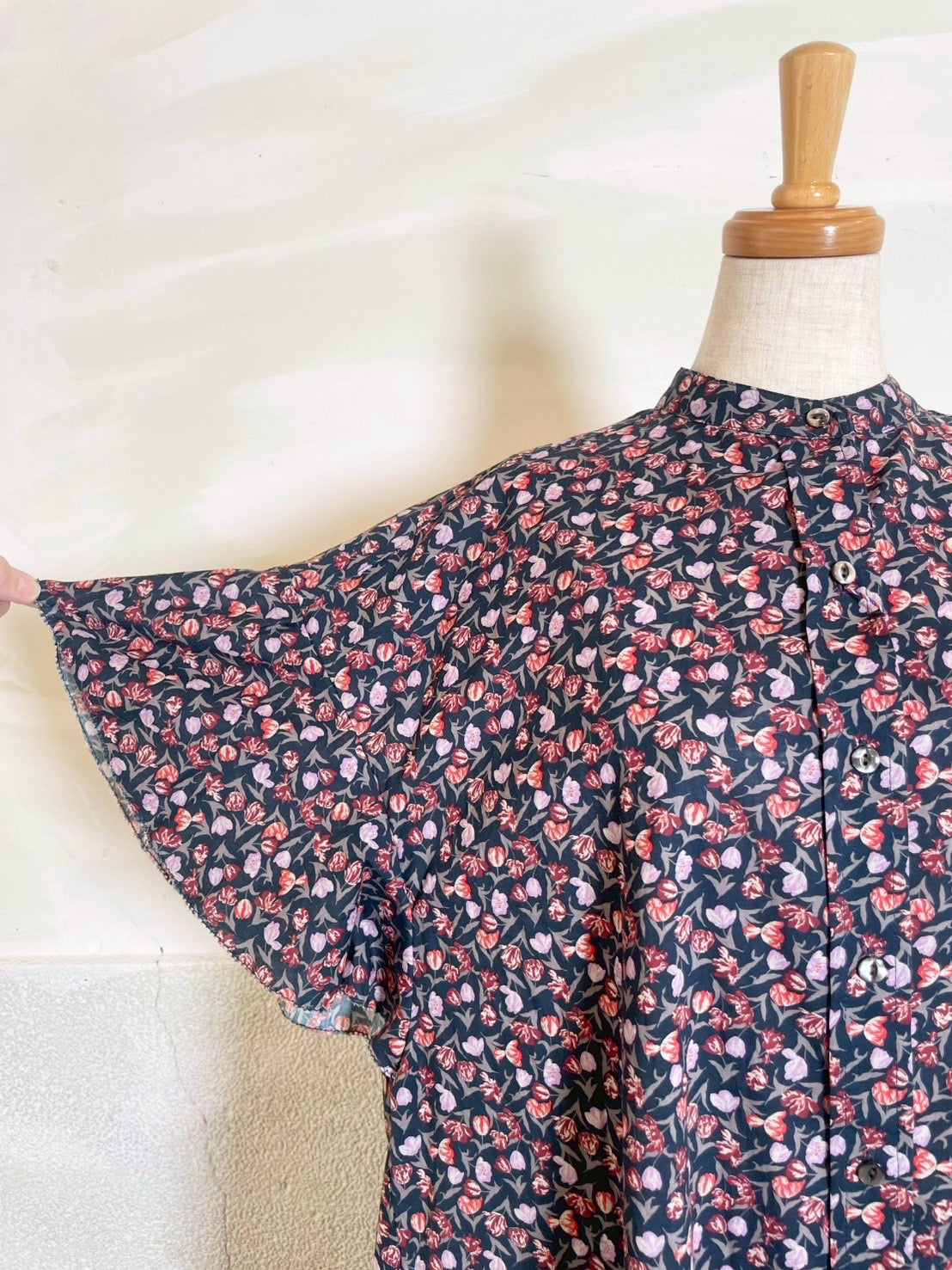 5分丈のフレアスリーブが腕まわりをすっきりと見せ、春先から真夏まで涼やかに着用できます。軽くて柔らかなローン素材を使用し、肌触りがよく、シワが目立ちにくいのも嬉しいポイント。