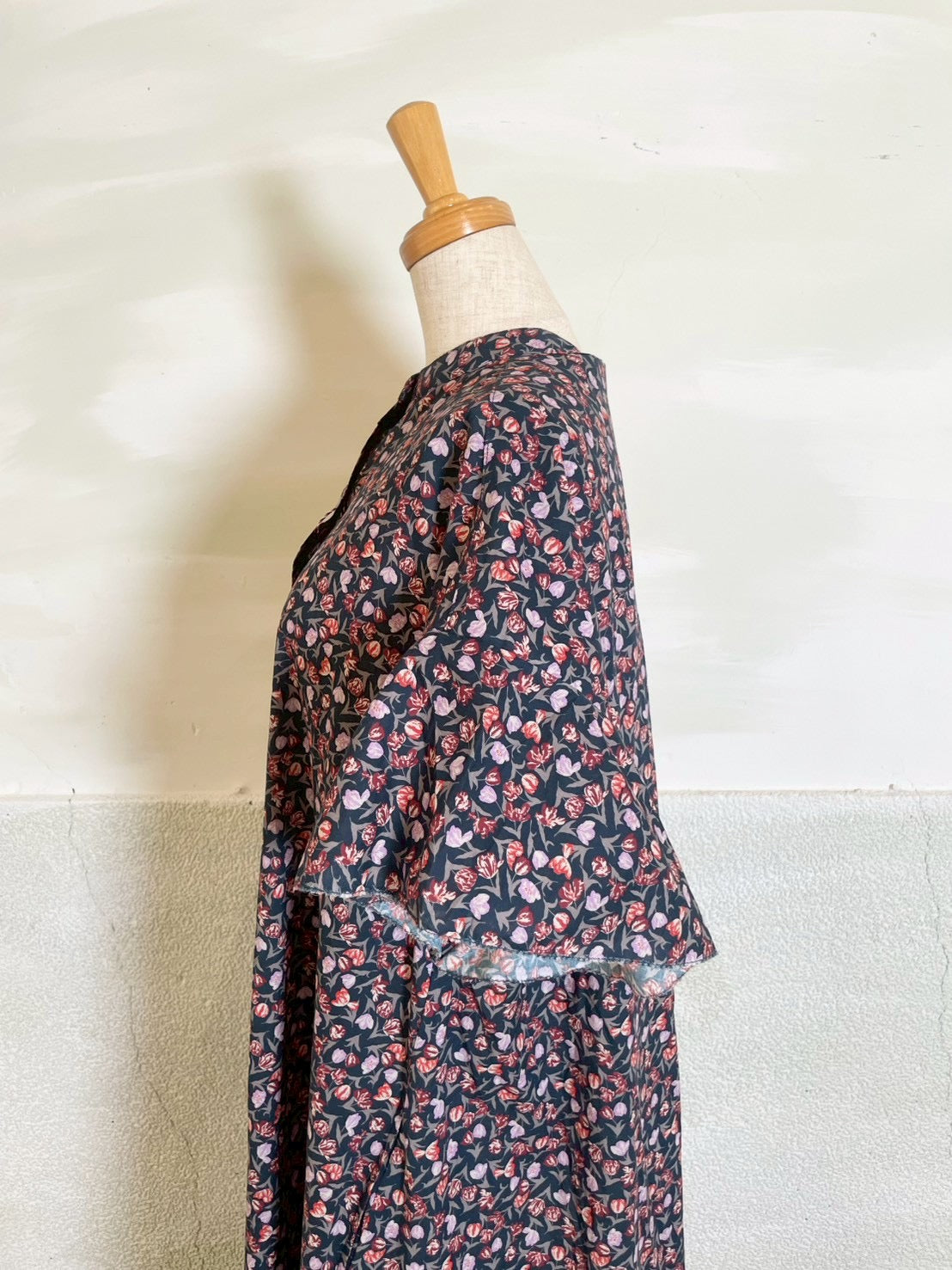 フラワープリントが印象的なワンピースです。落ち着いた配色の甘さを抑えたチューリップモチーフで、大人の装いに自然と馴染むデザイン。