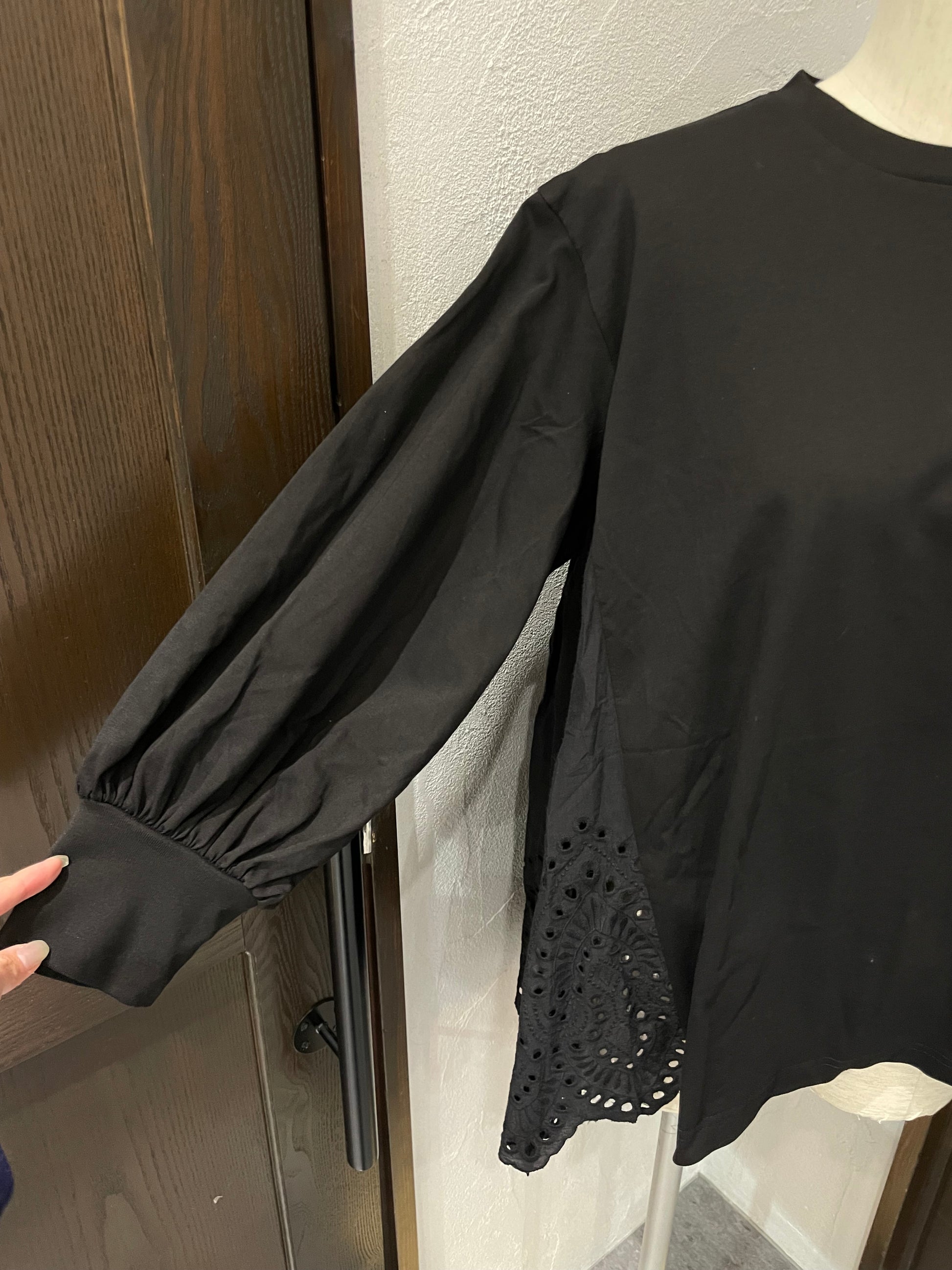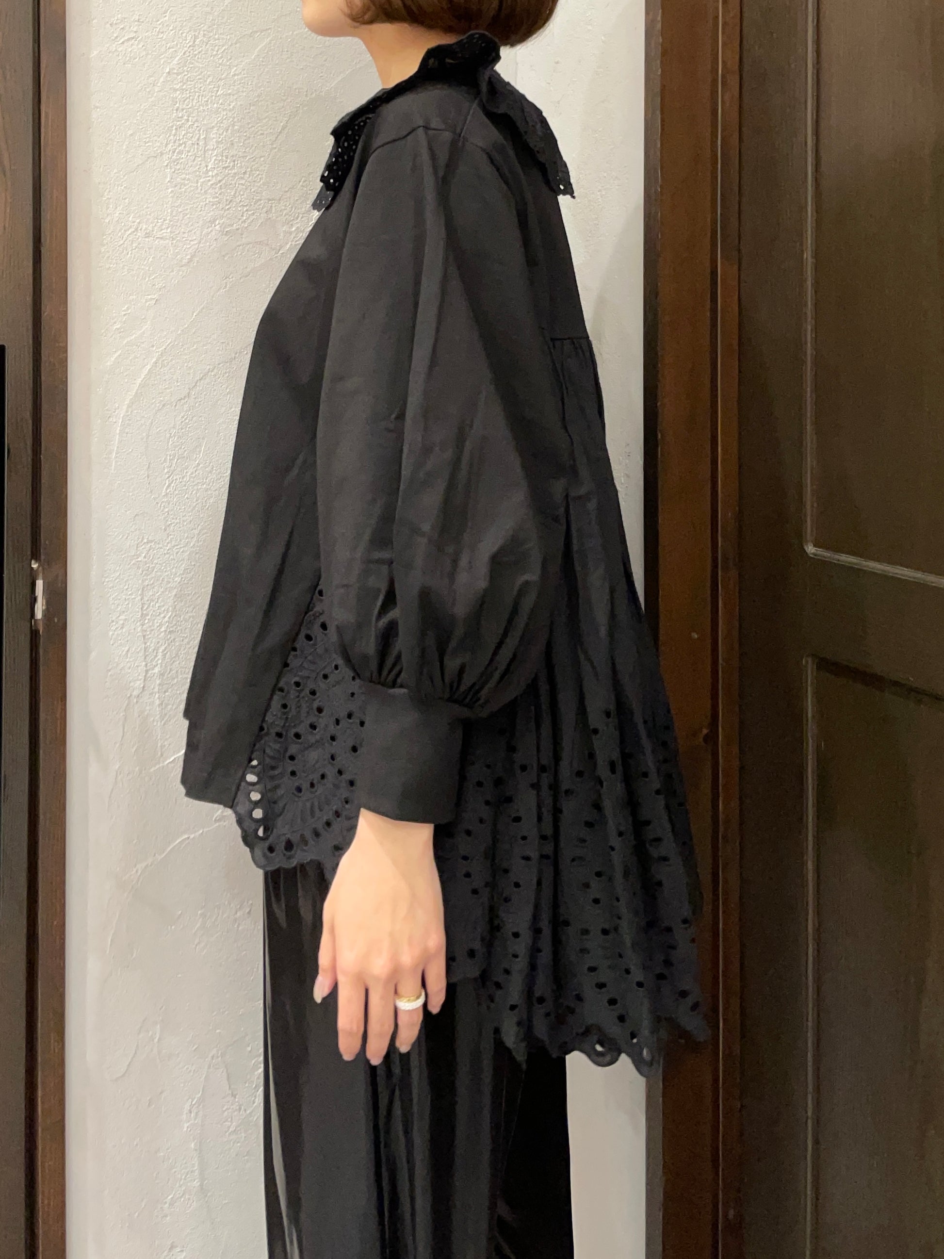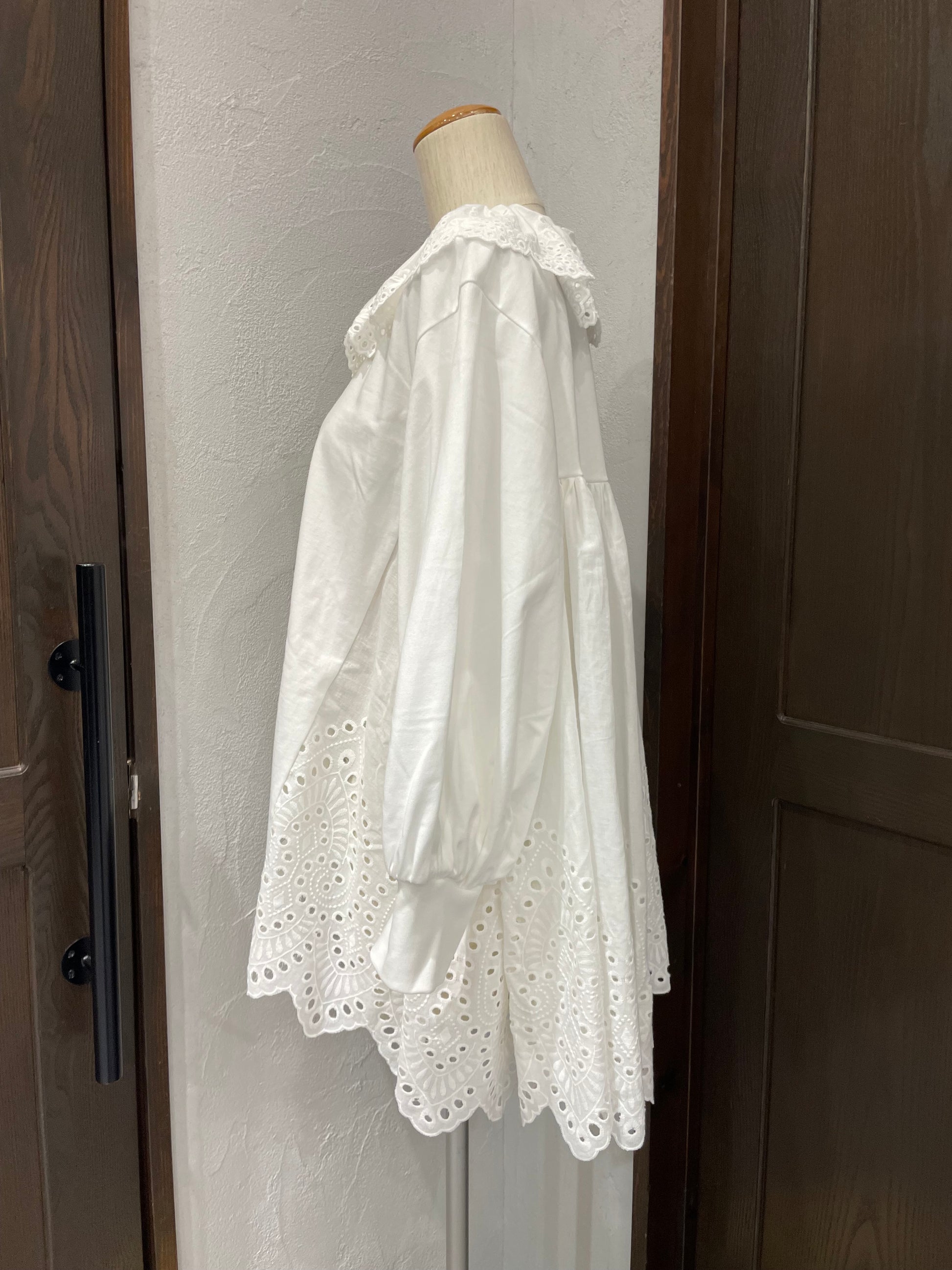 風合い豊かなコットンレースを使用しており、肌触りが良く、着心地も抜群です。軽やかで柔らかな生地感が、季節を問わず快適に着用できるポイントです。また、通気性にも優れているため、長時間の着用でもストレスを感じることはありません。