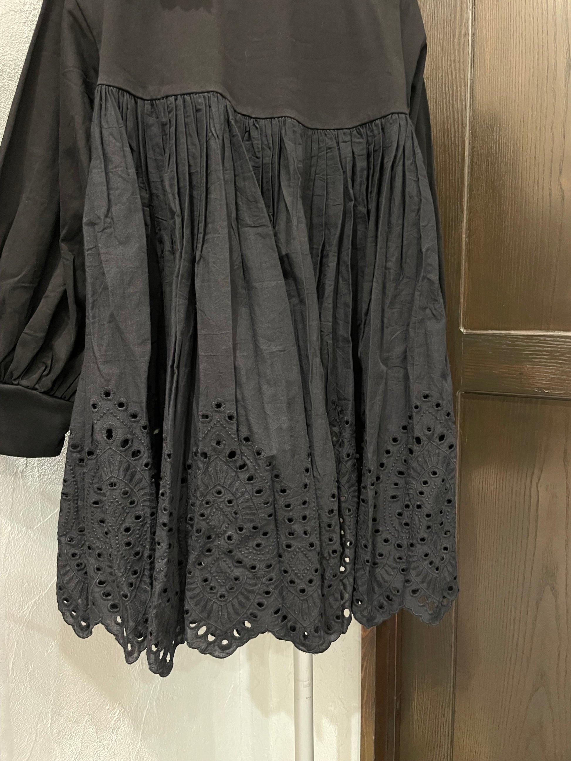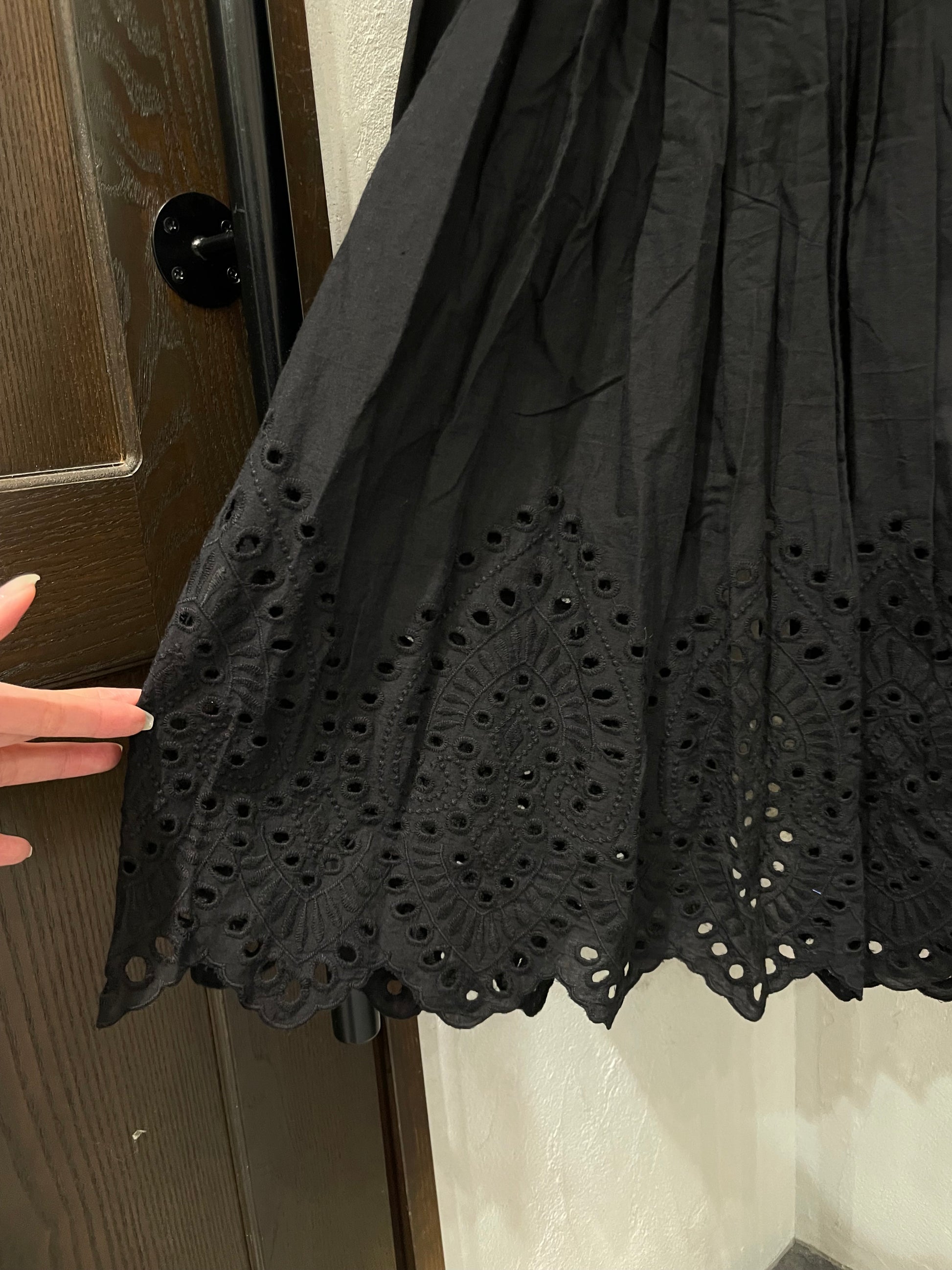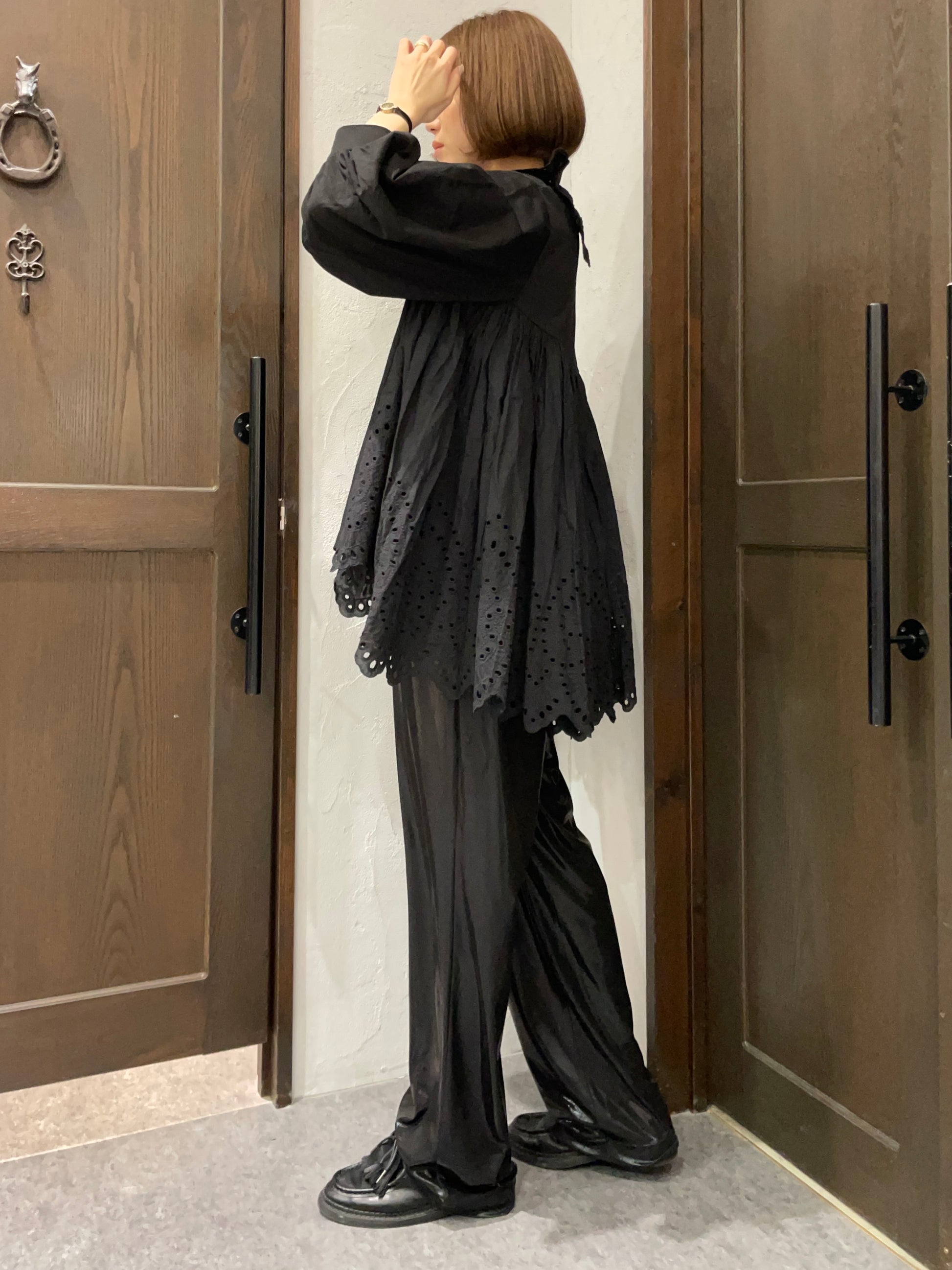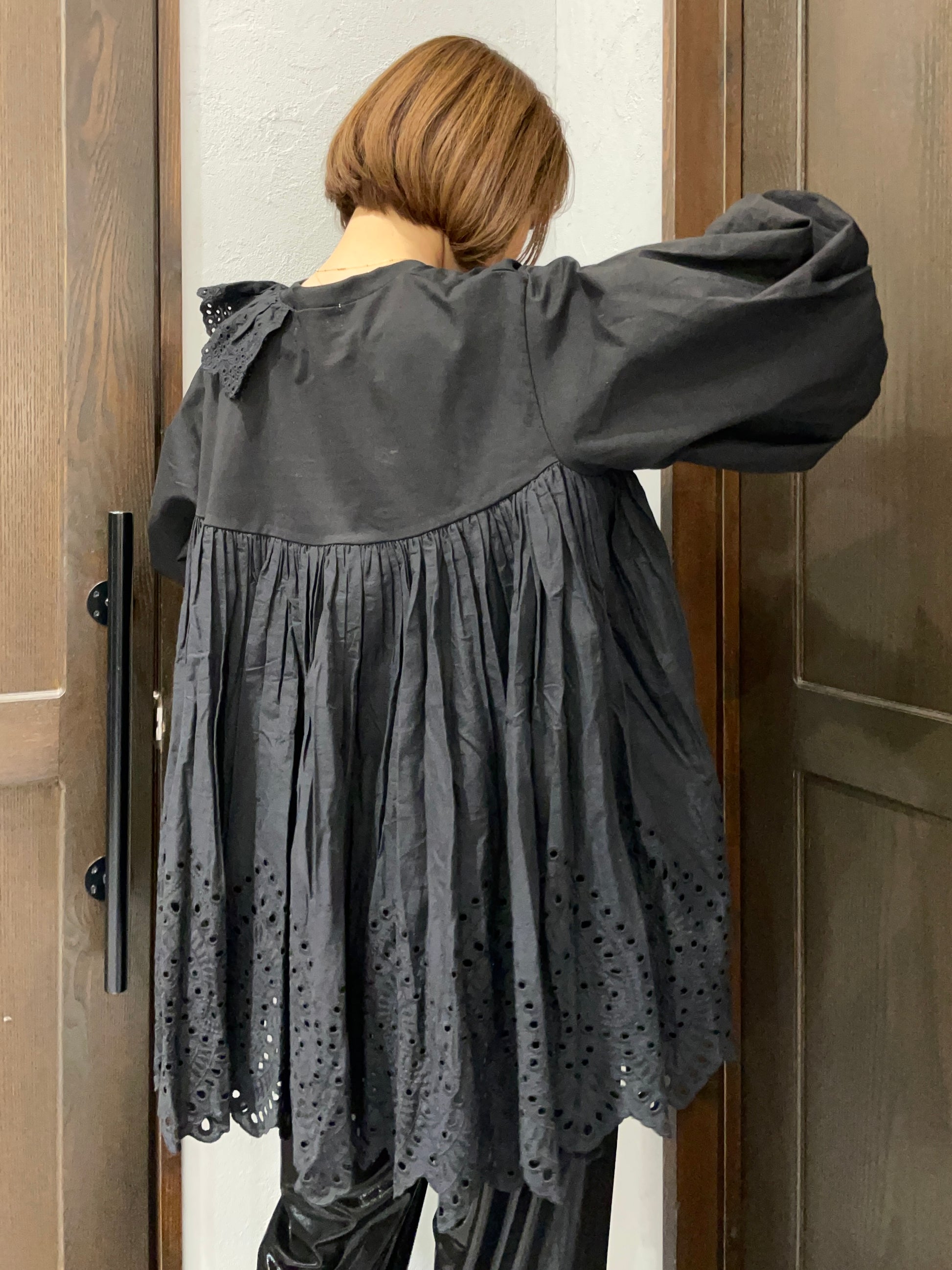 風合い豊かなコットンレースを使用しており、肌触りが良く、着心地も抜群です。軽やかで柔らかな生地感が、季節を問わず快適に着用できるポイントです。また、通気性にも優れているため、長時間の着用でもストレスを感じることはありません。