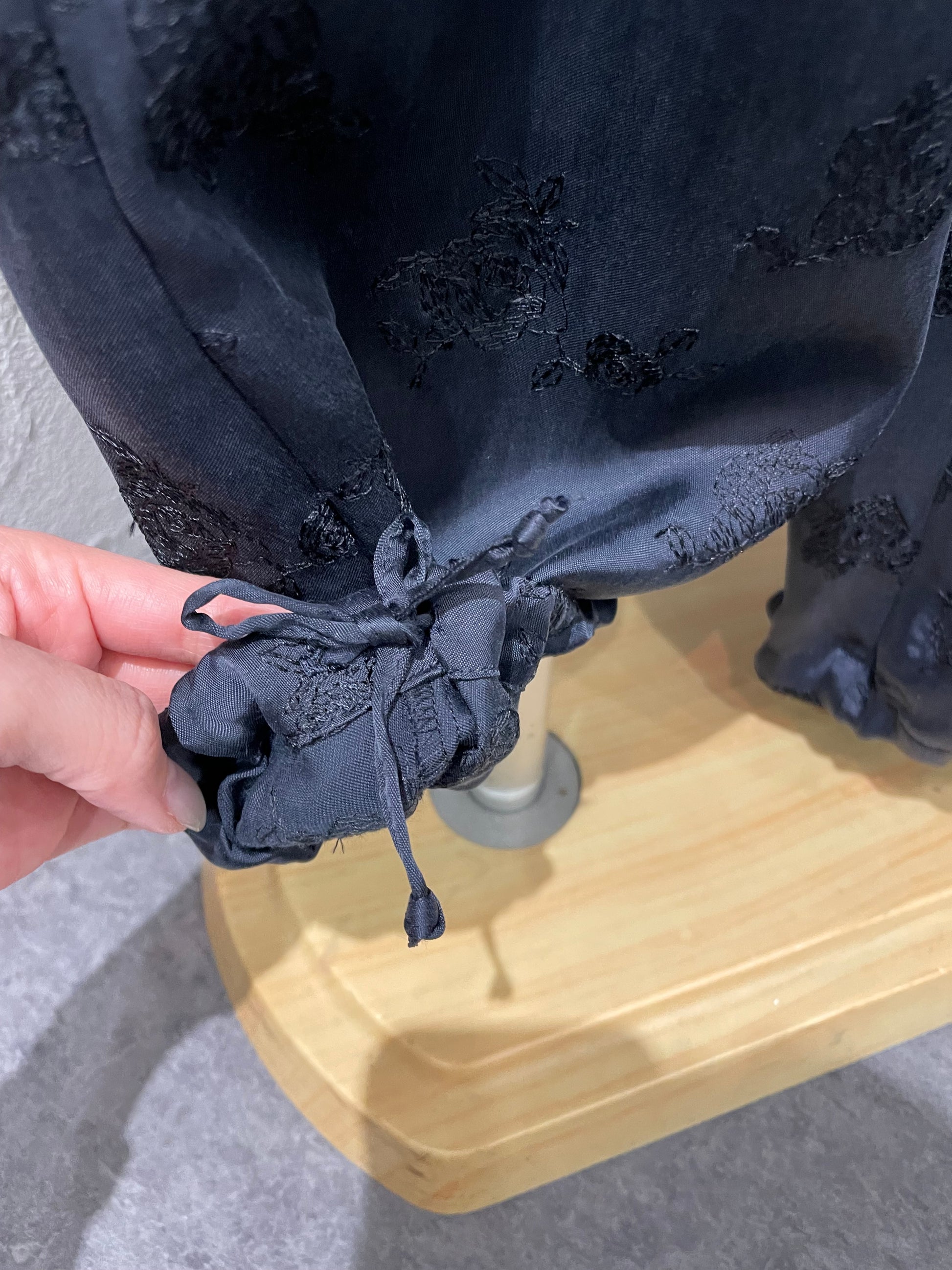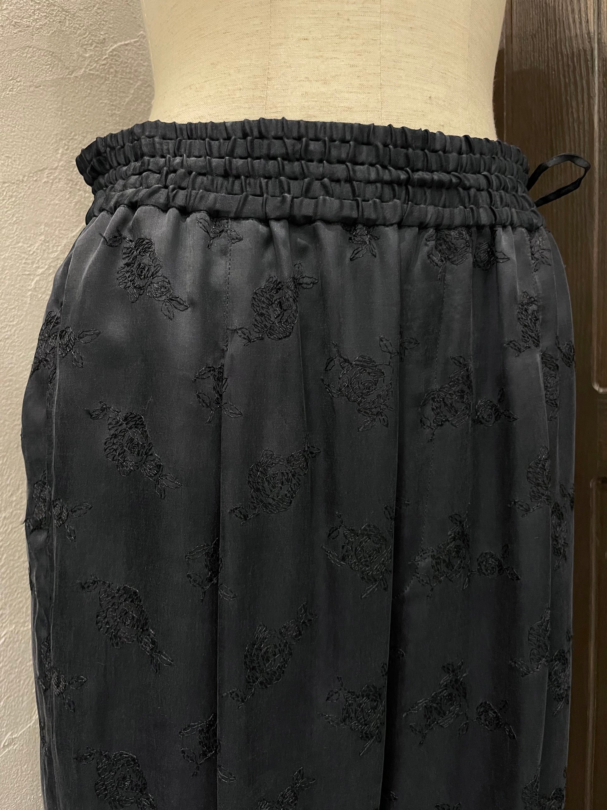 シンプルな白Tシャツやタンクトップを合わせるだけで、ローズ刺繍の存在感が際立ち、リラックス感の中にも品格を感じる大人のスタイルに。同素材のシャツやビスチェと合わせれば、セットアップとしてまとまりのあるモードな印象に仕上がります。