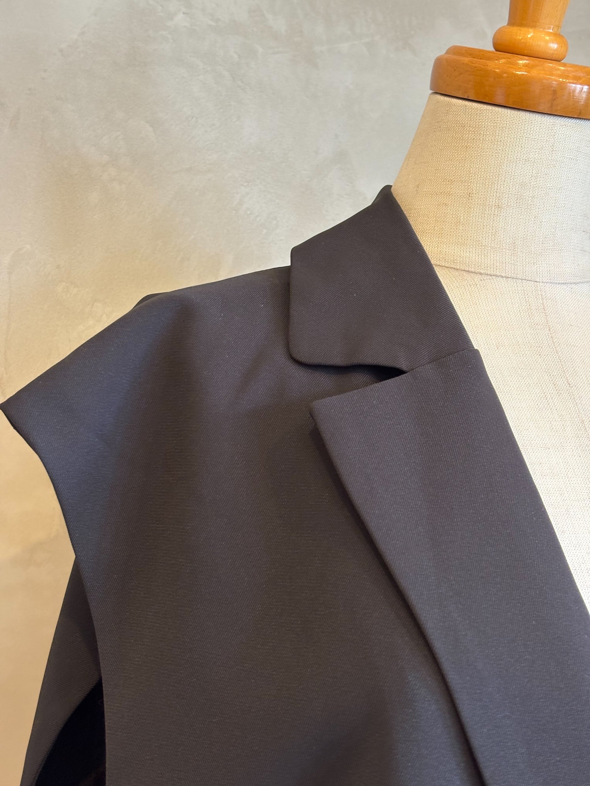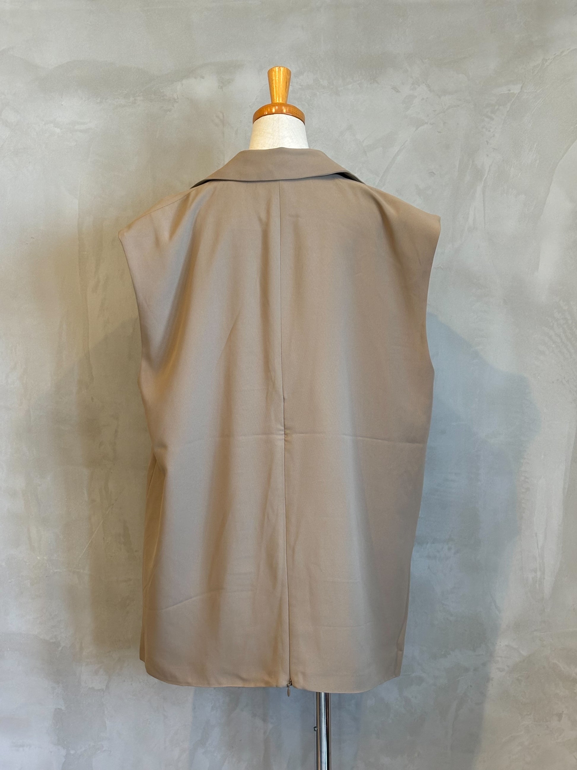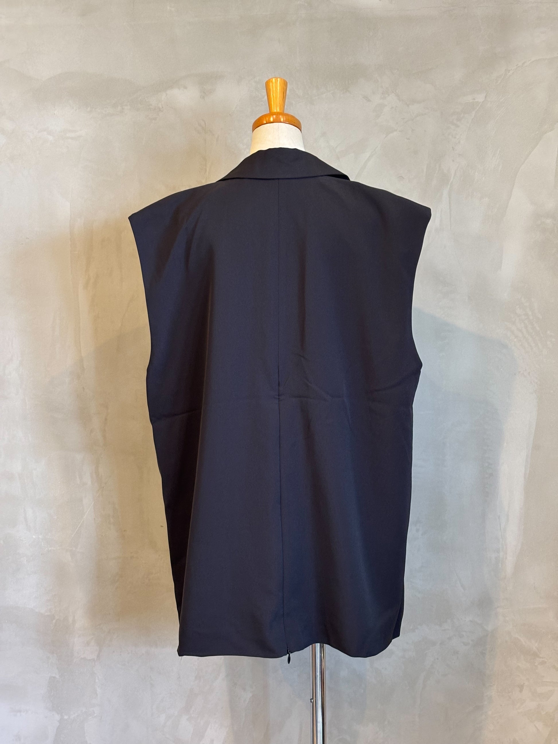1枚羽織るだけで、かっちりとした印象になるデザインジレ。