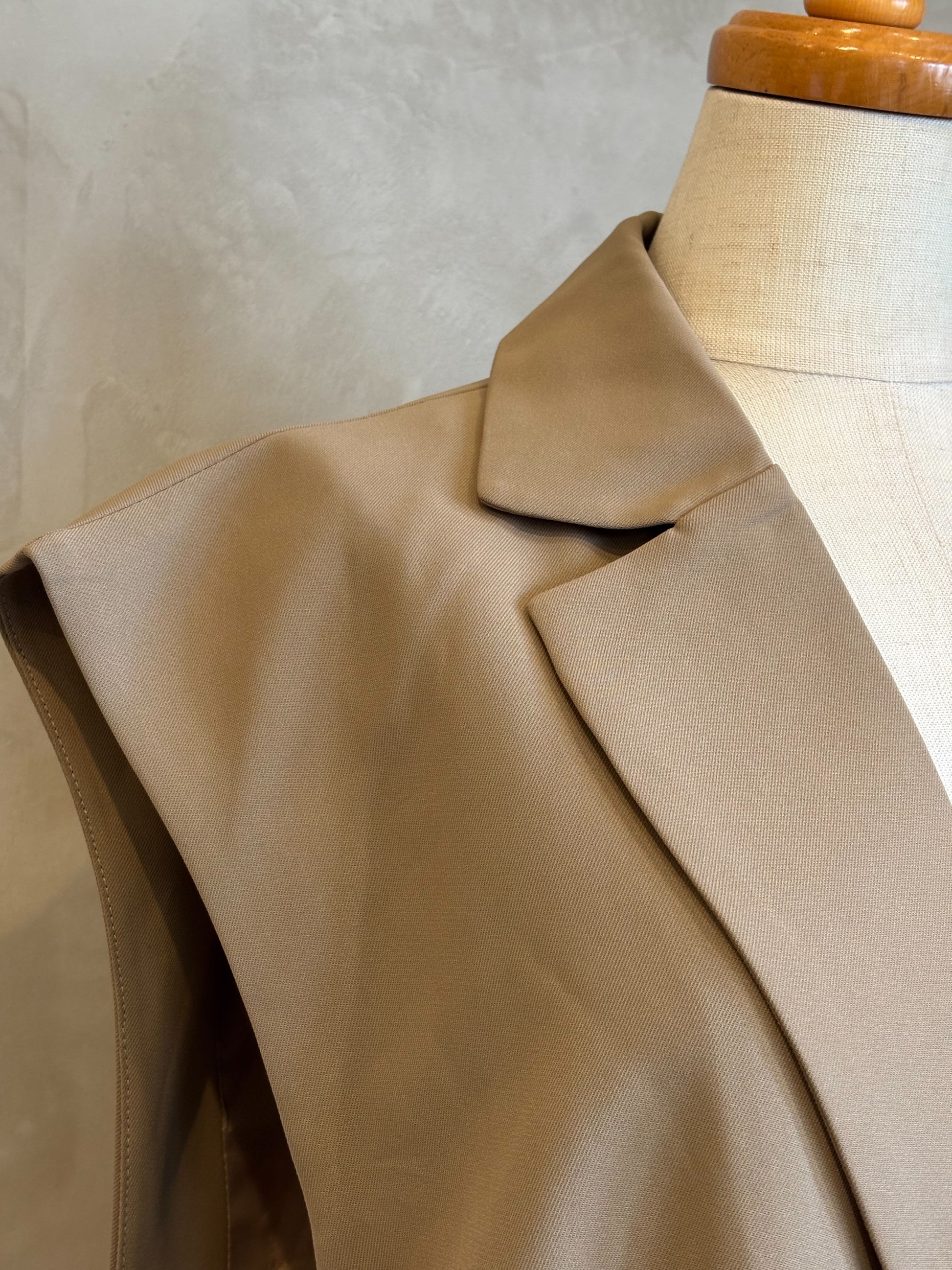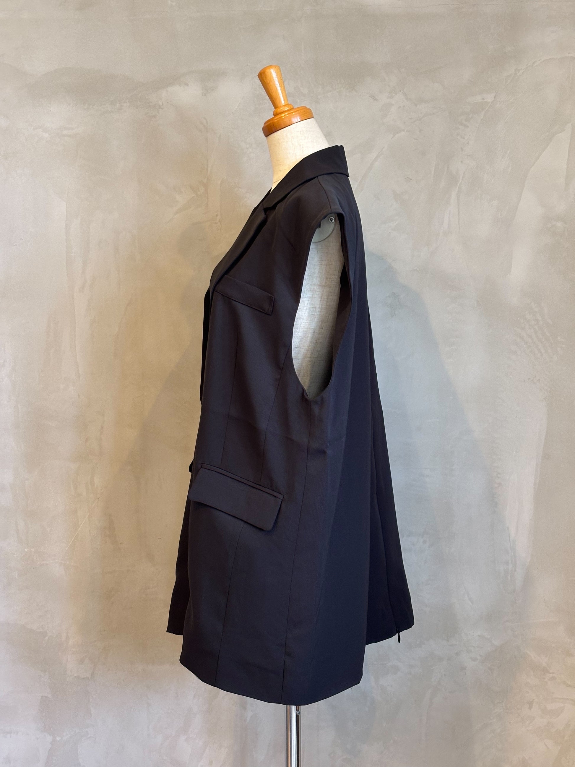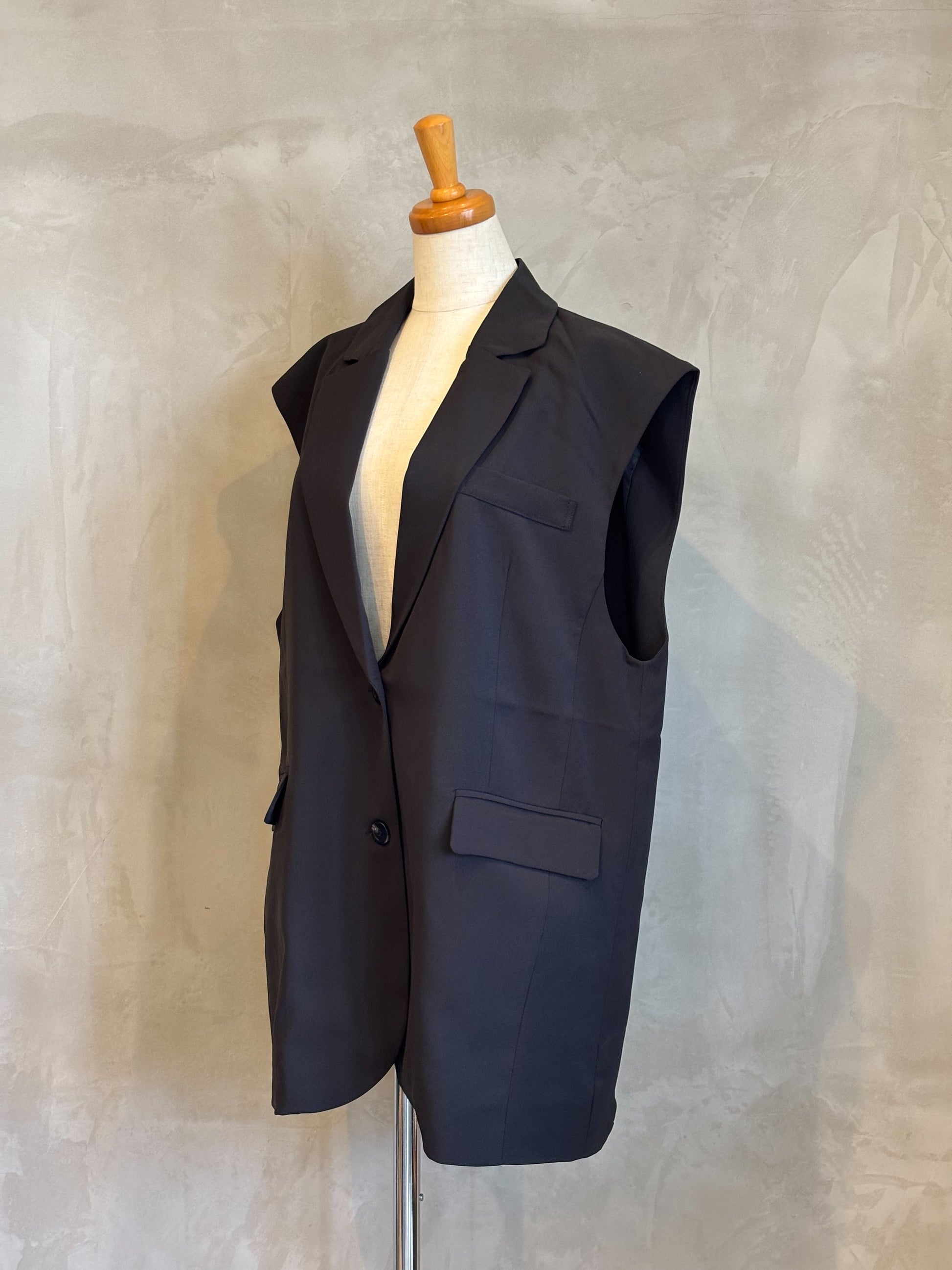 1枚羽織るだけで、かっちりとした印象になるデザインジレ。