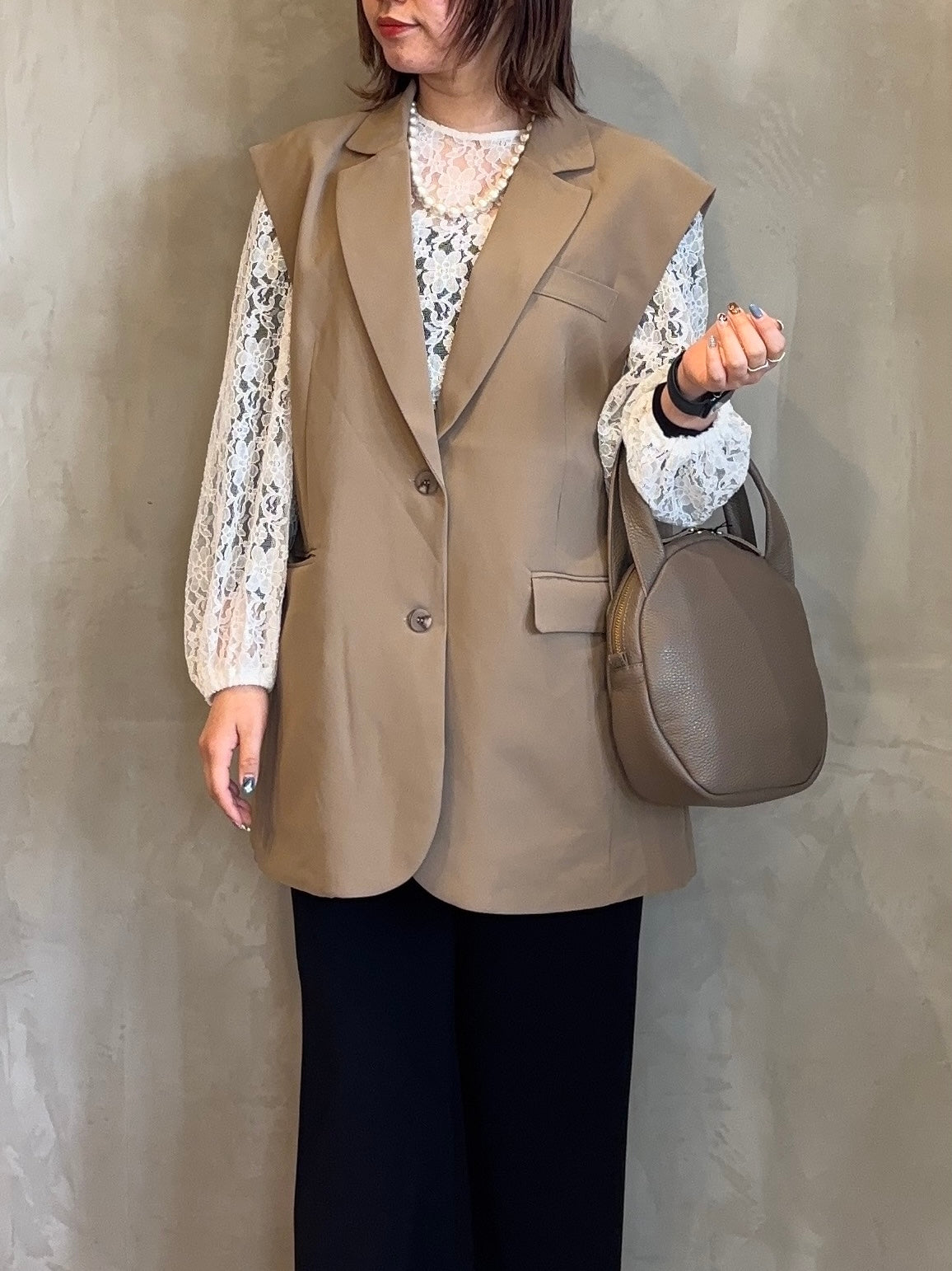キャミソールやタンクトップ、Tシャツと合わせたり、ロンTと合わせても◎テーラードジレなのでオケージョンにも対応でき、着用シーンを選ばずに活躍するアイテムです。