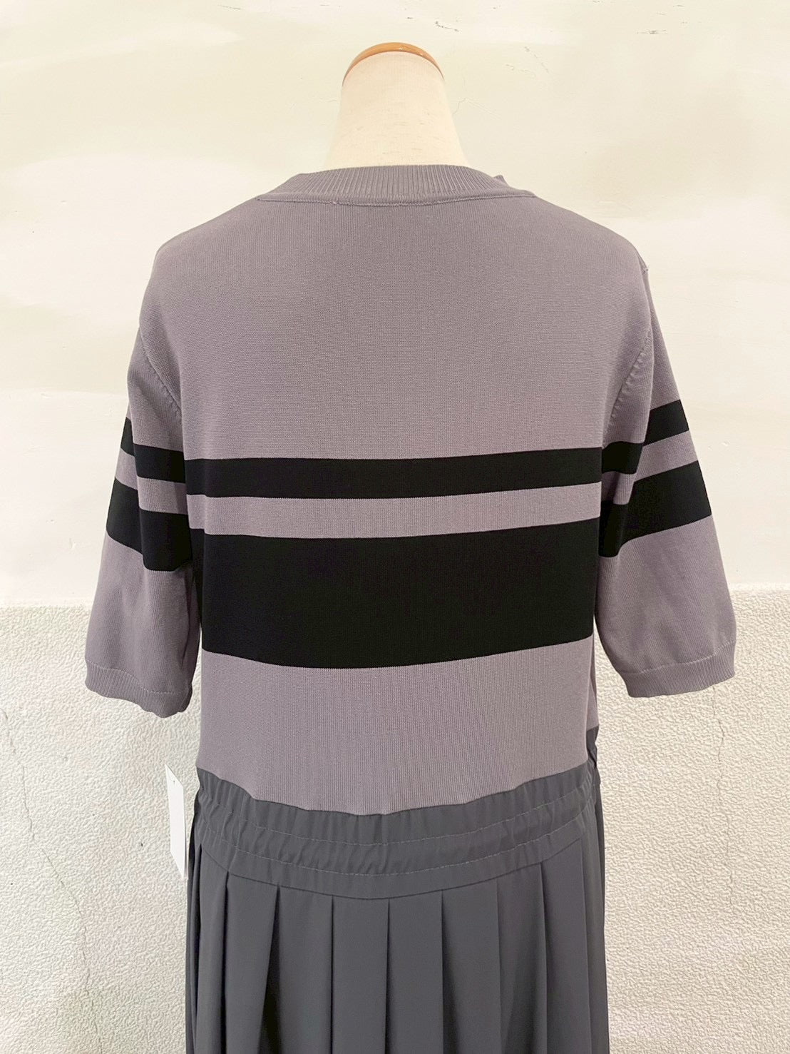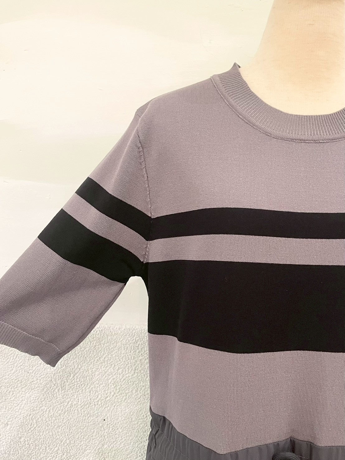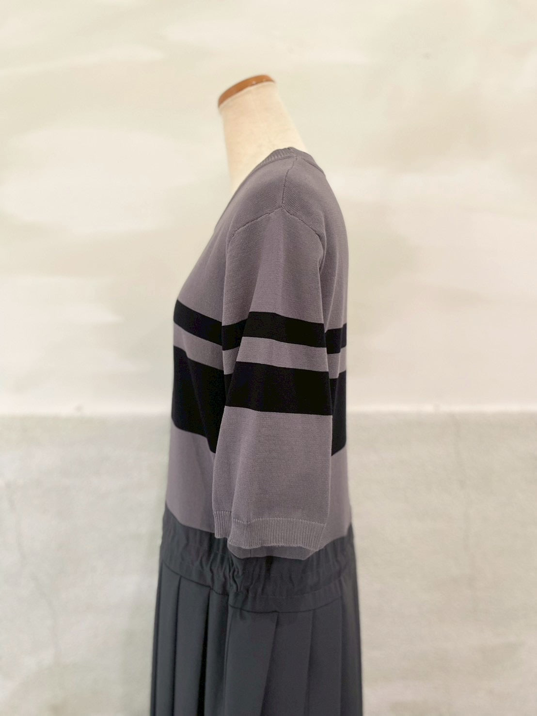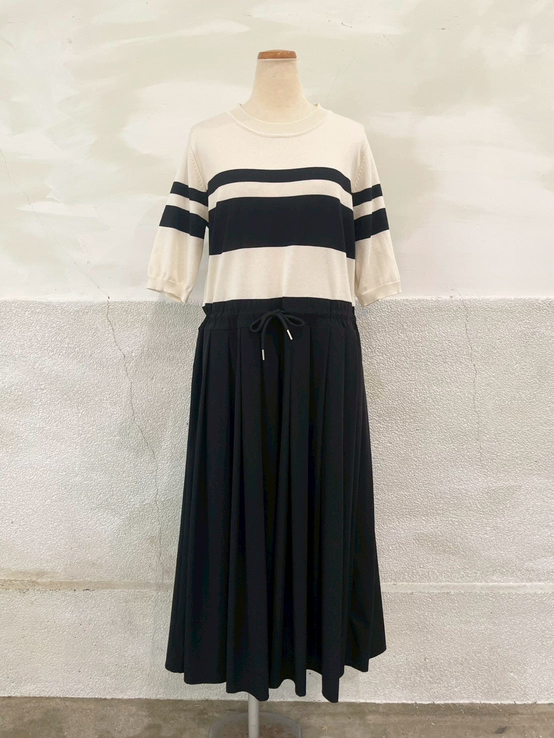 心地よい着心地とスタイリッシュなデザインが魅力のbotanical/異素材切替ワンピース。 ニットボーダーと異素材の絶妙な切替に、半袖がリラックス感を演出。シンプルながらも存在感のある一枚です。 ウエスト調節紐付きで、自分好みのシルエットにアレンジできるのも嬉しいポイント。おしゃれに楽しみながら、体型にフィットさせやすいデザインです。 シワになりにくいポリエステルとレーヨン素材を使用しており、お手入れも簡単。デイリーユースにぴったりで、忙しい毎日にも活躍します。 カジュアルからちょっとしたお出かけまで幅広く対応できるこのワンピース、軽やかな印象の着こなしを楽しんでいただけます。