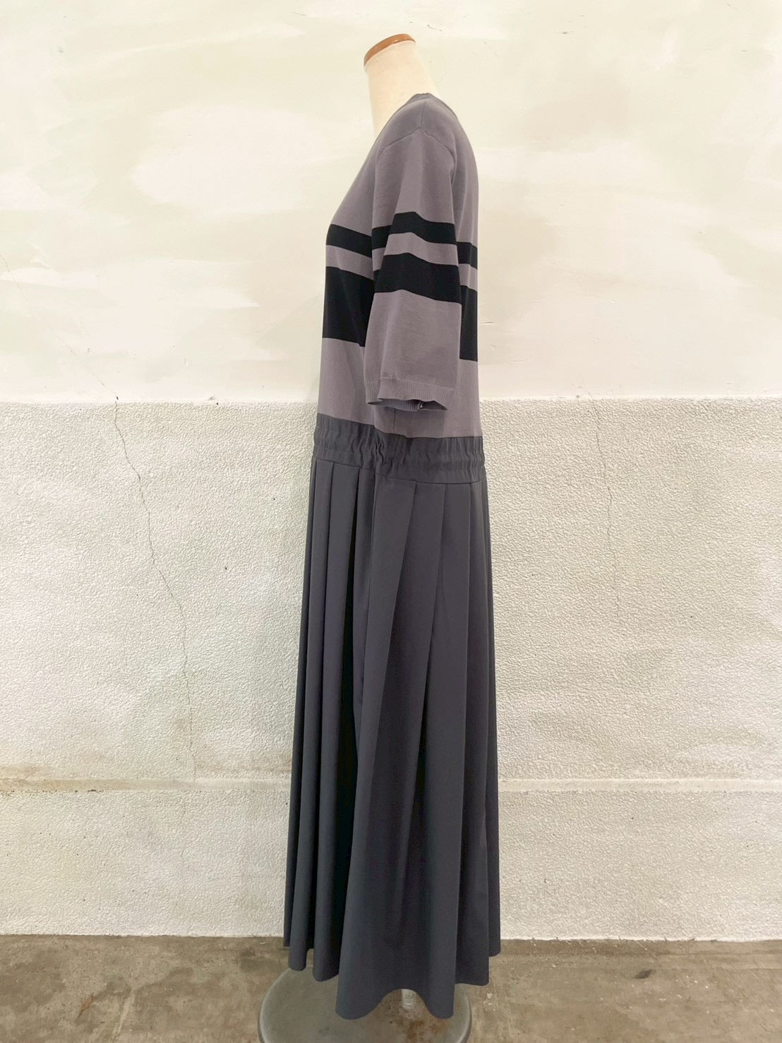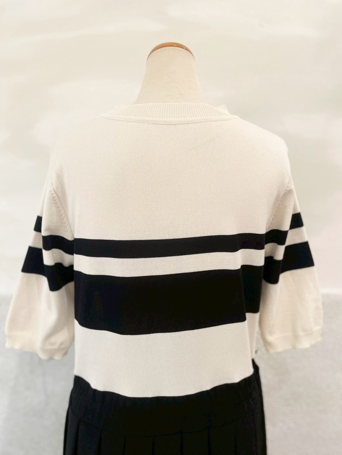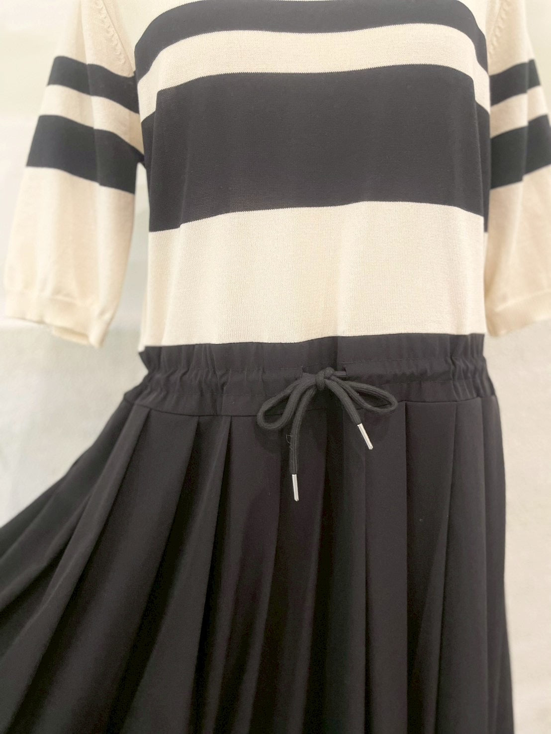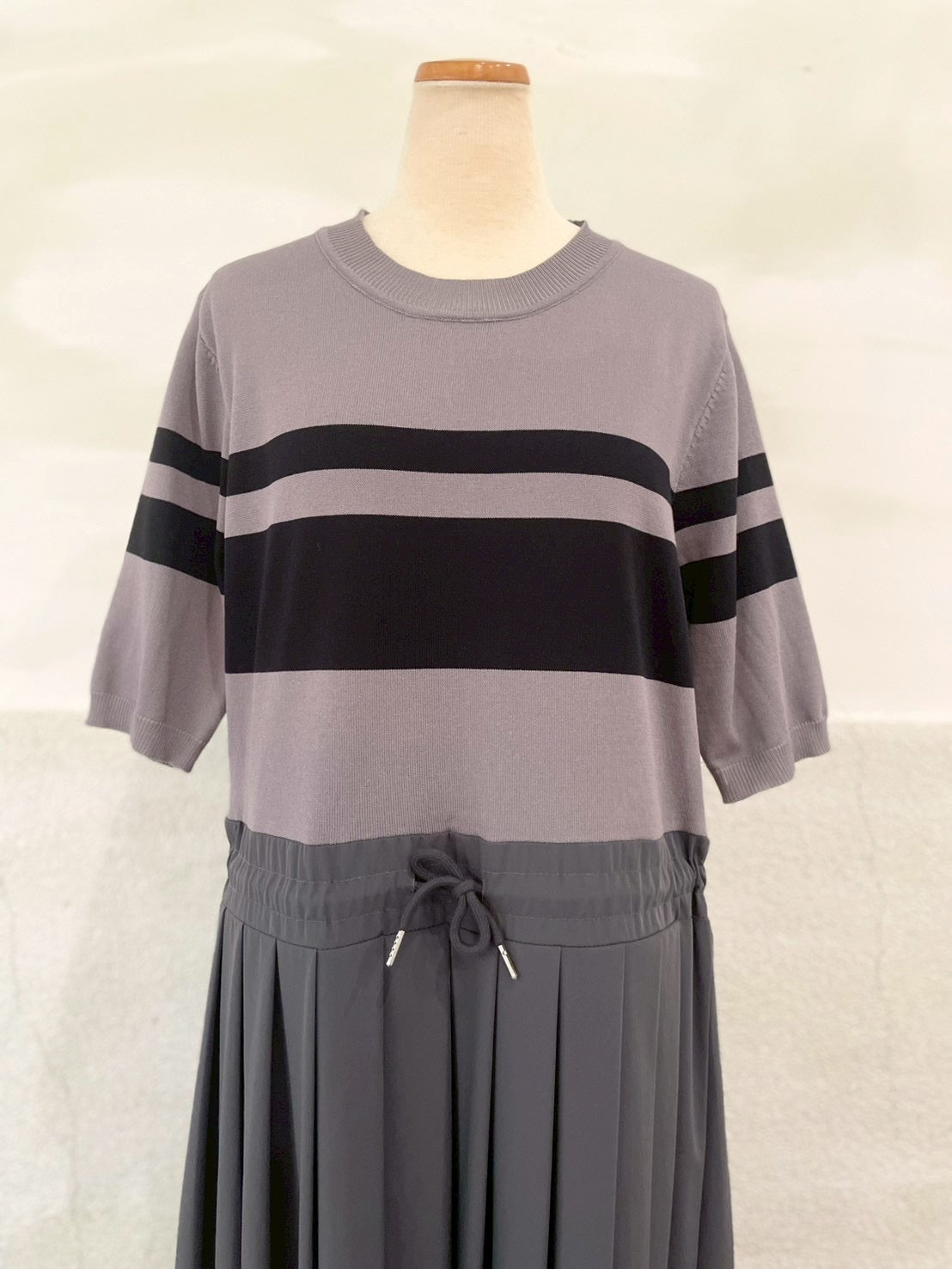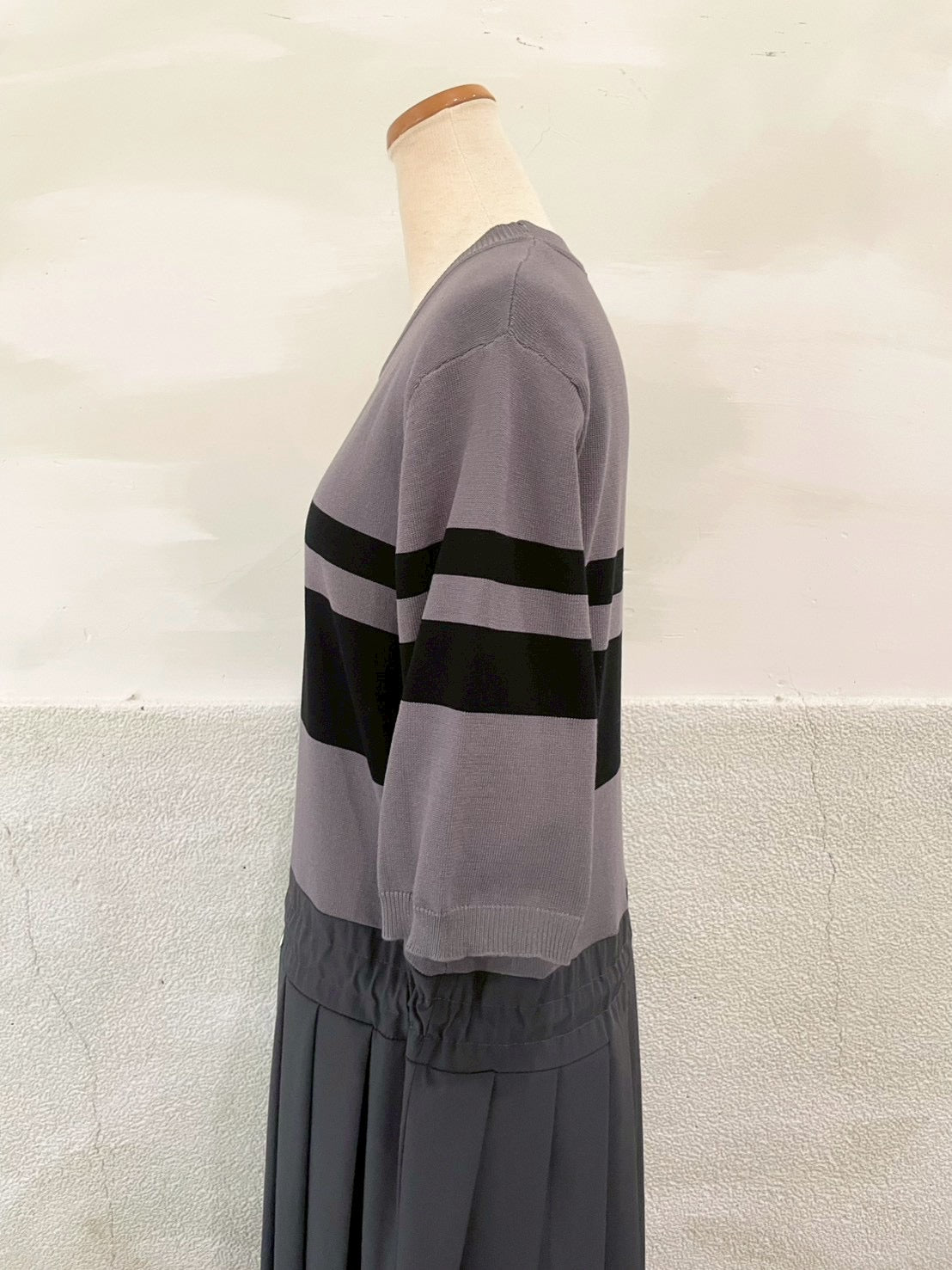 心地よい着心地とスタイリッシュなデザインが魅力のbotanical/異素材切替ワンピース。 ニットボーダーと異素材の絶妙な切替に、半袖がリラックス感を演出。シンプルながらも存在感のある一枚です。 ウエスト調節紐付きで、自分好みのシルエットにアレンジできるのも嬉しいポイント。おしゃれに楽しみながら、体型にフィットさせやすいデザインです。 シワになりにくいポリエステルとレーヨン素材を使用しており、お手入れも簡単。デイリーユースにぴったりで、忙しい毎日にも活躍します。 カジュアルからちょっとしたお出かけまで幅広く対応できるこのワンピース、軽やかな印象の着こなしを楽しんでいただけます。