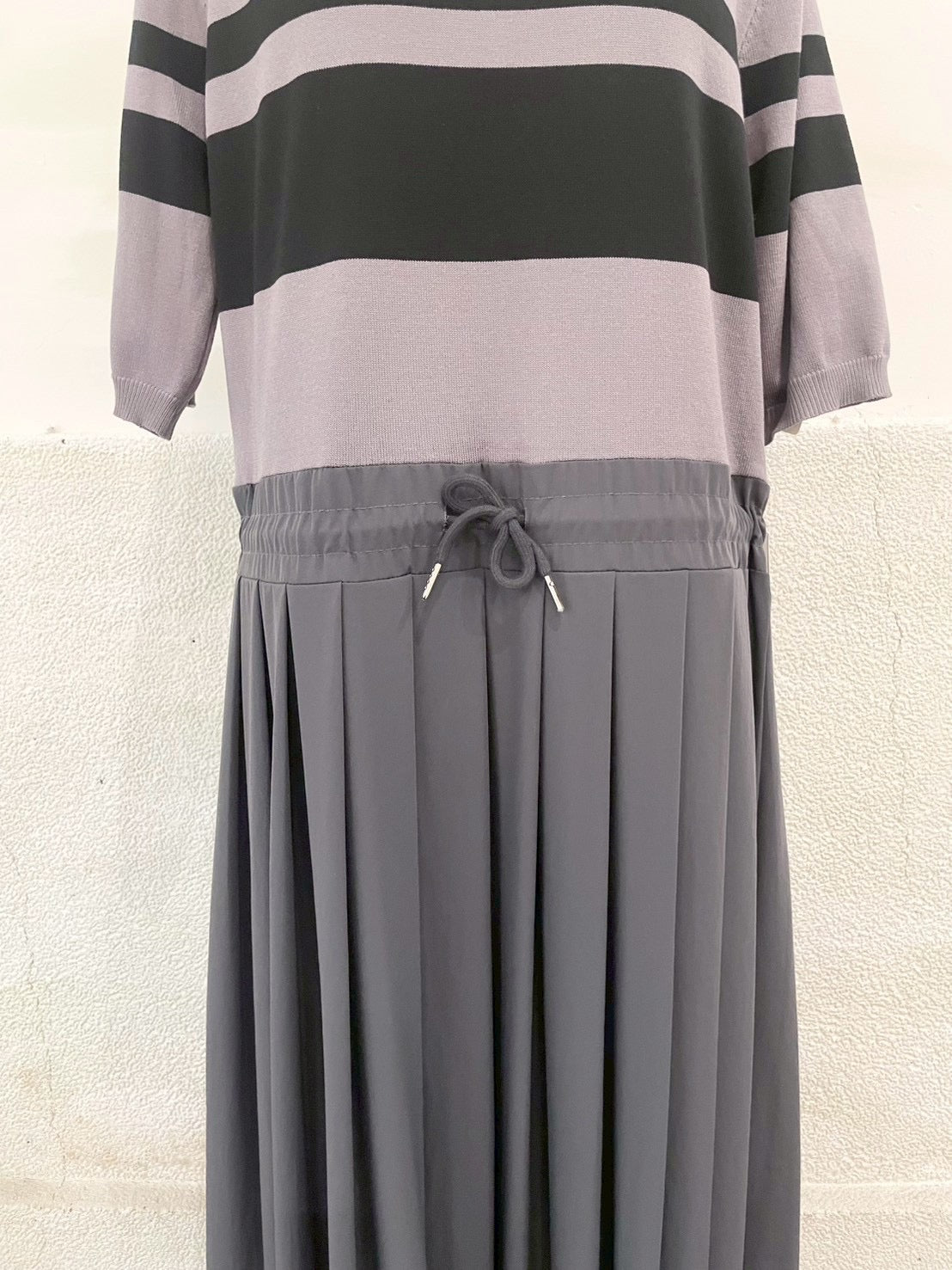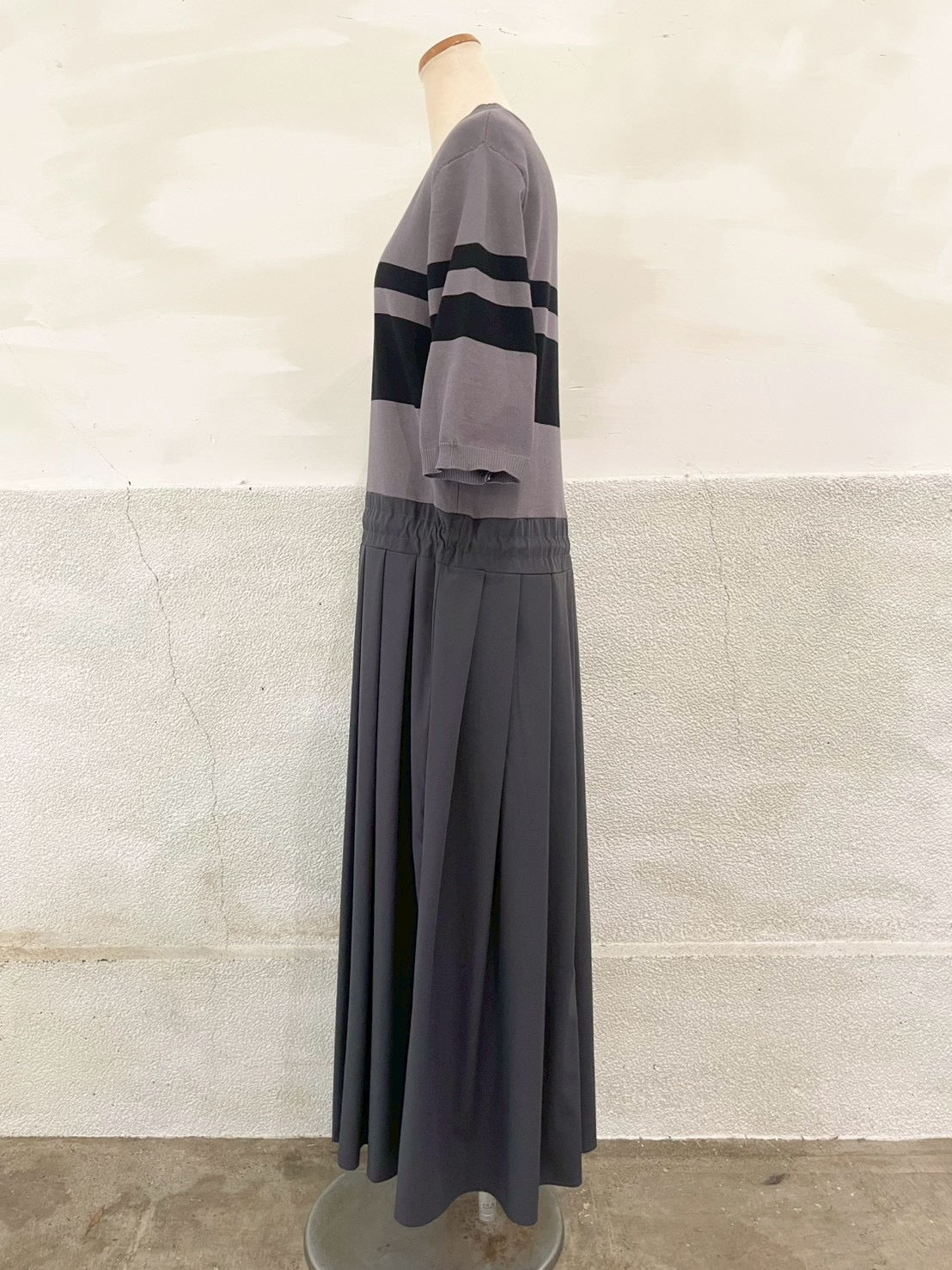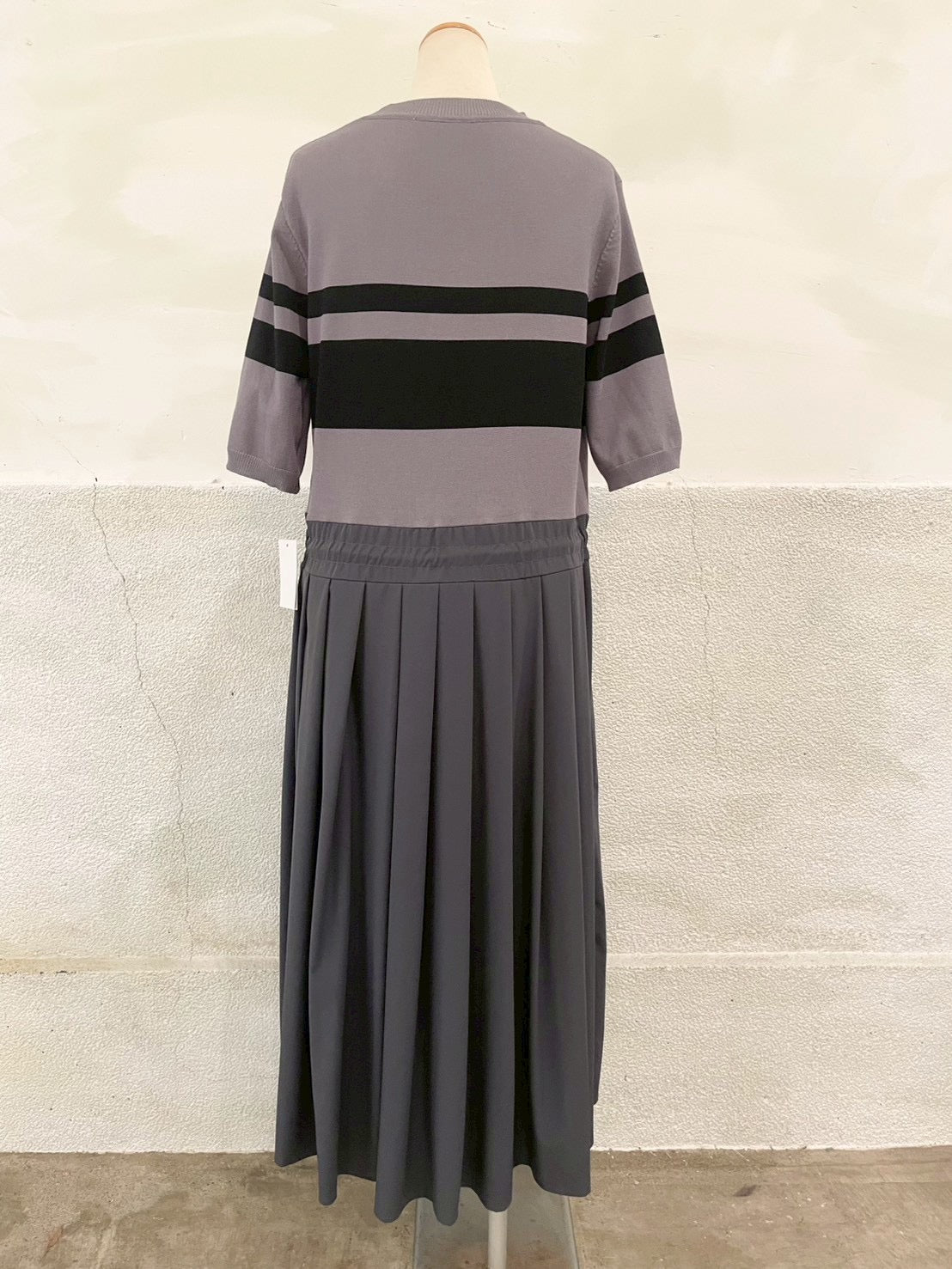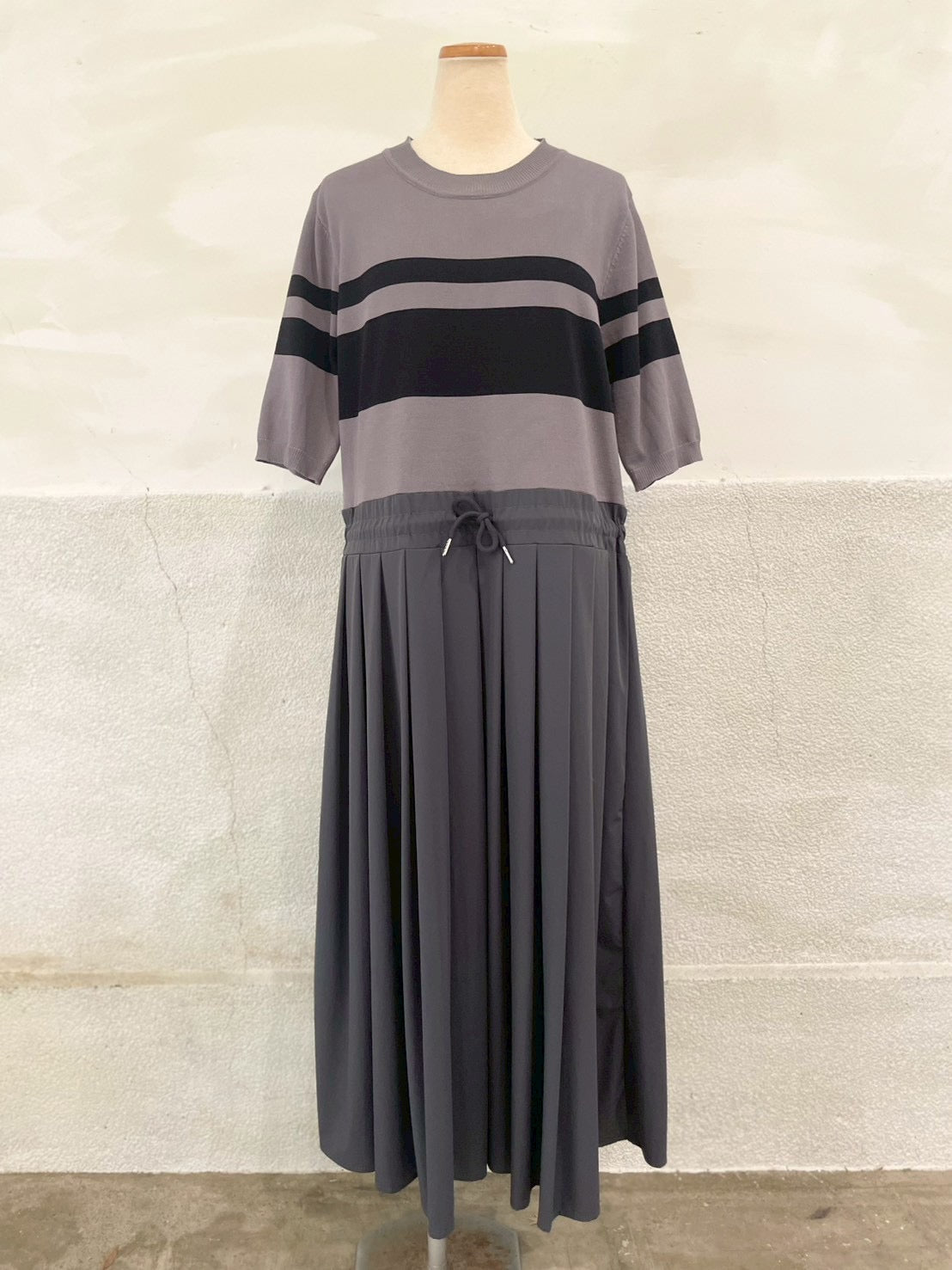 心地よい着心地とスタイリッシュなデザインが魅力のbotanical/異素材切替ワンピース。 ニットボーダーと異素材の絶妙な切替に、半袖がリラックス感を演出。シンプルながらも存在感のある一枚です。 ウエスト調節紐付きで、自分好みのシルエットにアレンジできるのも嬉しいポイント。おしゃれに楽しみながら、体型にフィットさせやすいデザインです。 シワになりにくいポリエステルとレーヨン素材を使用しており、お手入れも簡単。デイリーユースにぴったりで、忙しい毎日にも活躍します。 カジュアルからちょっとしたお出かけまで幅広く対応できるこのワンピース、軽やかな印象の着こなしを楽しんでいただけます。