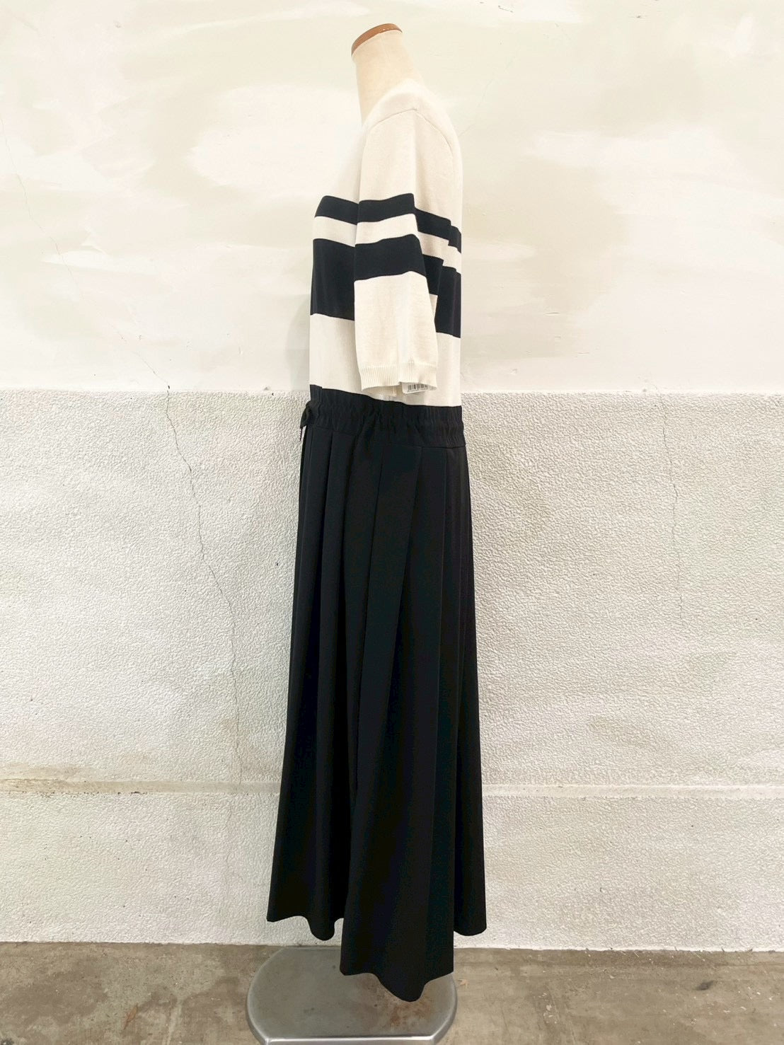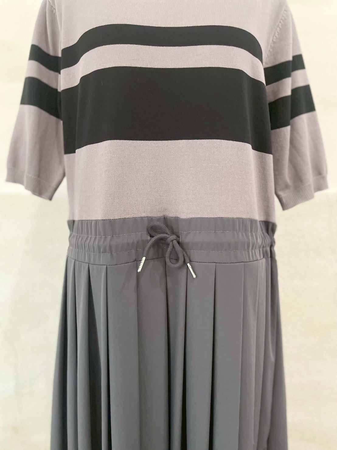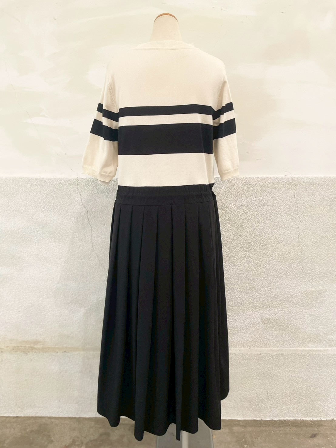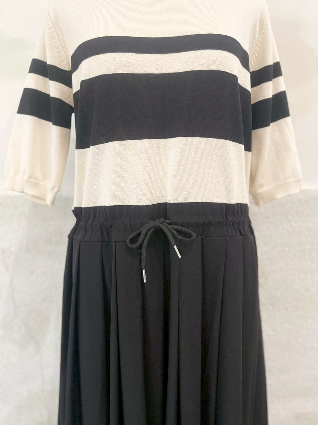 心地よい着心地とスタイリッシュなデザインが魅力のbotanical/異素材切替ワンピース。 ニットボーダーと異素材の絶妙な切替に、半袖がリラックス感を演出。シンプルながらも存在感のある一枚です。 ウエスト調節紐付きで、自分好みのシルエットにアレンジできるのも嬉しいポイント。おしゃれに楽しみながら、体型にフィットさせやすいデザインです。 シワになりにくいポリエステルとレーヨン素材を使用しており、お手入れも簡単。デイリーユースにぴったりで、忙しい毎日にも活躍します。 カジュアルからちょっとしたお出かけまで幅広く対応できるこのワンピース、軽やかな印象の着こなしを楽しんでいただけます。